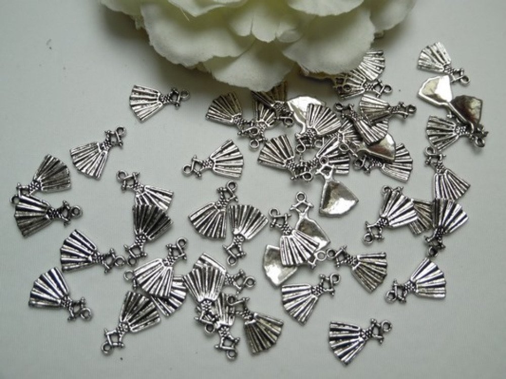 Lot de 4 Breloques Petite Robe Grand Tutu de Danse 19x13mm Argent Tibétain
