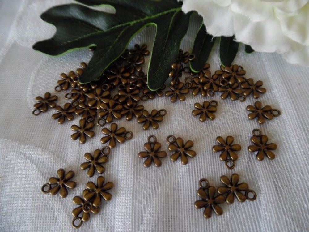 Lot de 5 Breloques Fleurs 12x11mm en Bronze Plein