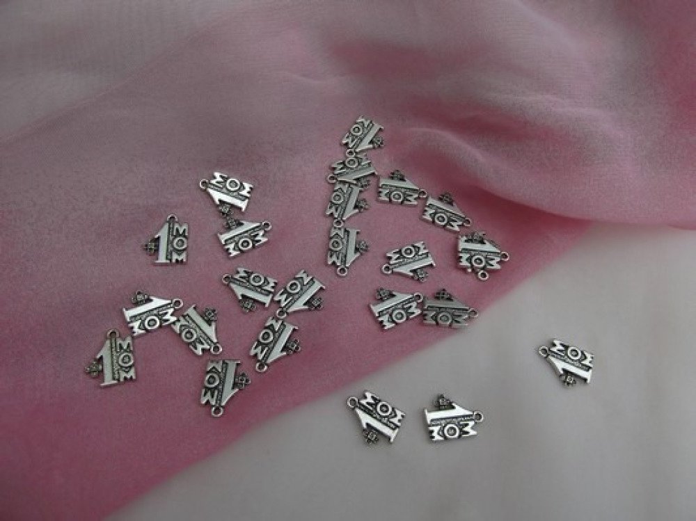 Lot de 5 Breloques "One Mom" "Une Maman" Argent Tibétain 15x12mm