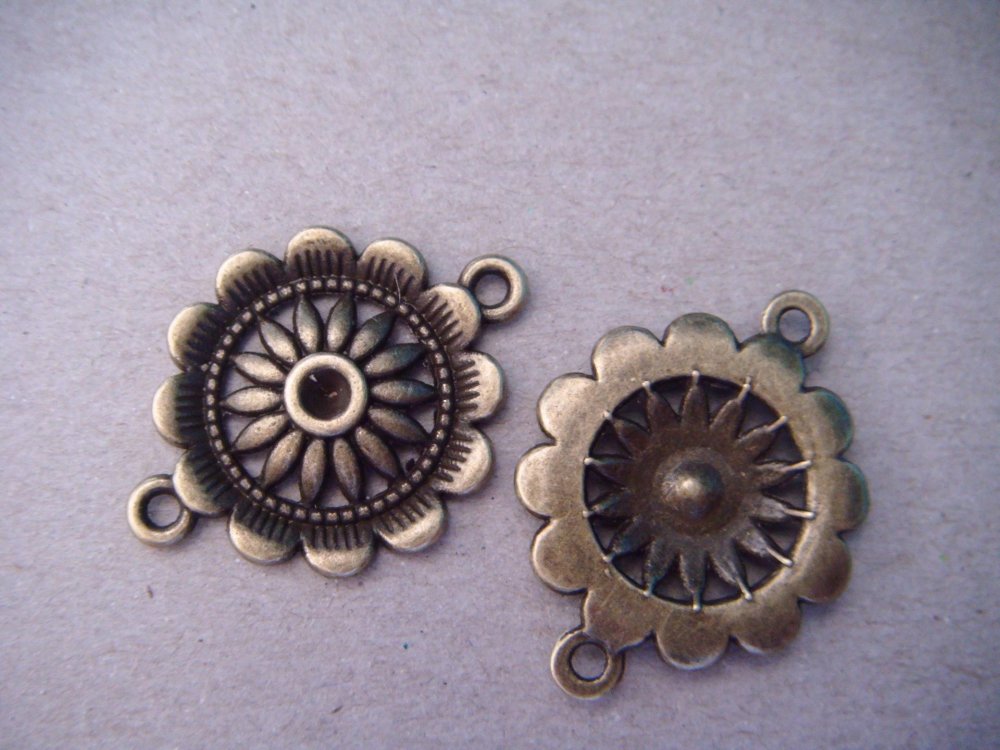 ce très beau lot de 5 connecteurs motif fleur en métal bronze de 29 x 22 mm.