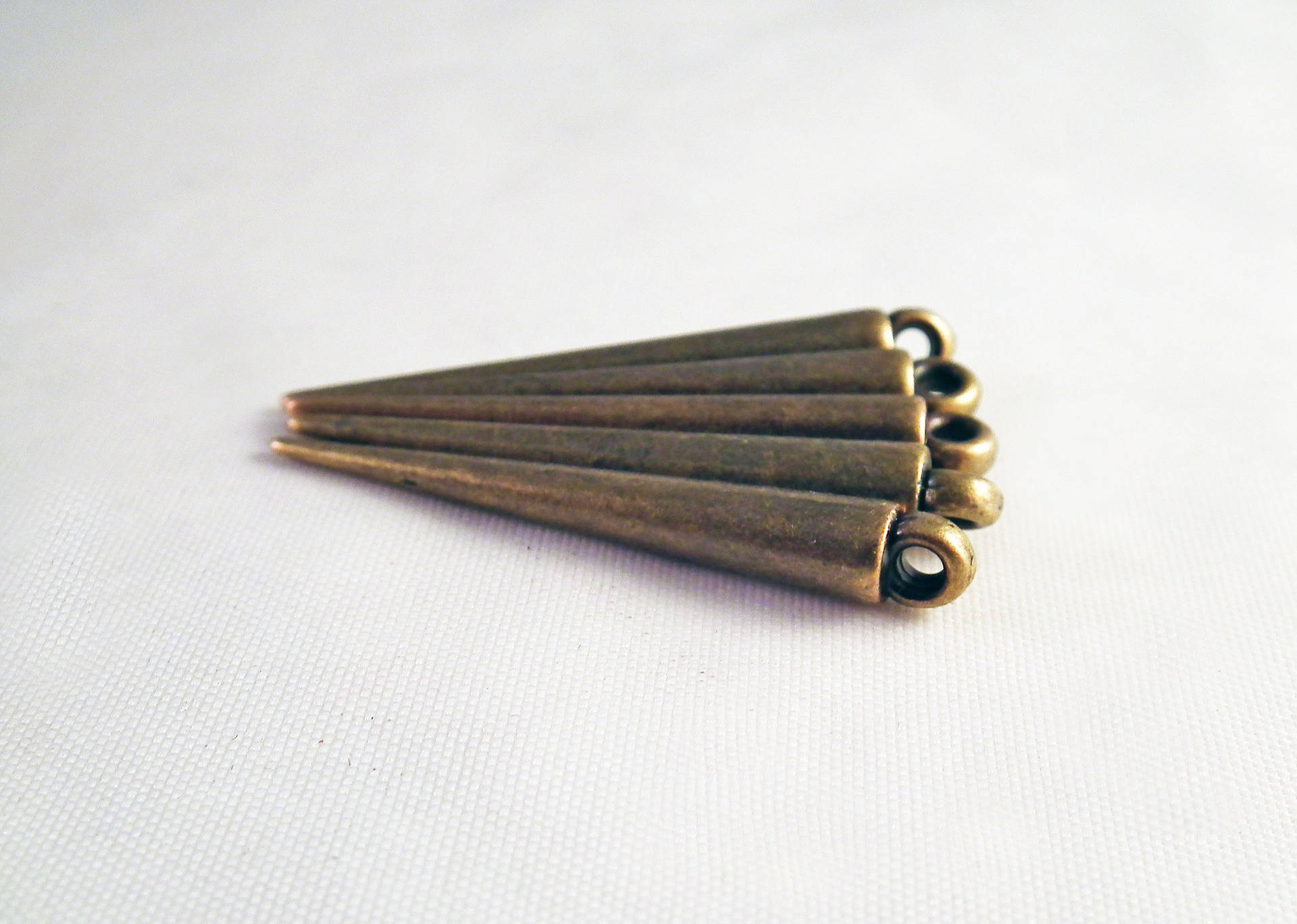 Lot de 5 pendentifs breloques Bronze Mat Électrique en forme de cône ou pic ou Clou Spike, Longueur 3.5cm.