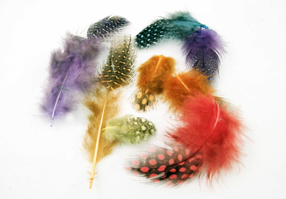 Lot de 5 Plumes de Pintade de Couleurs Mixtes