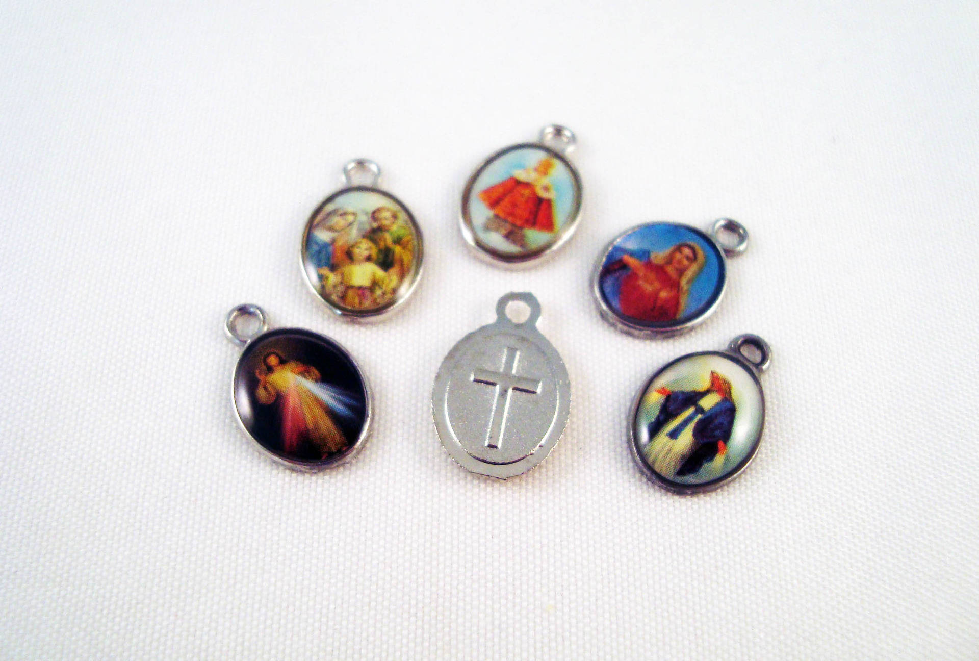 Lot de 6 Breloques Pendentifs Médailles à thème religieux motifs variés