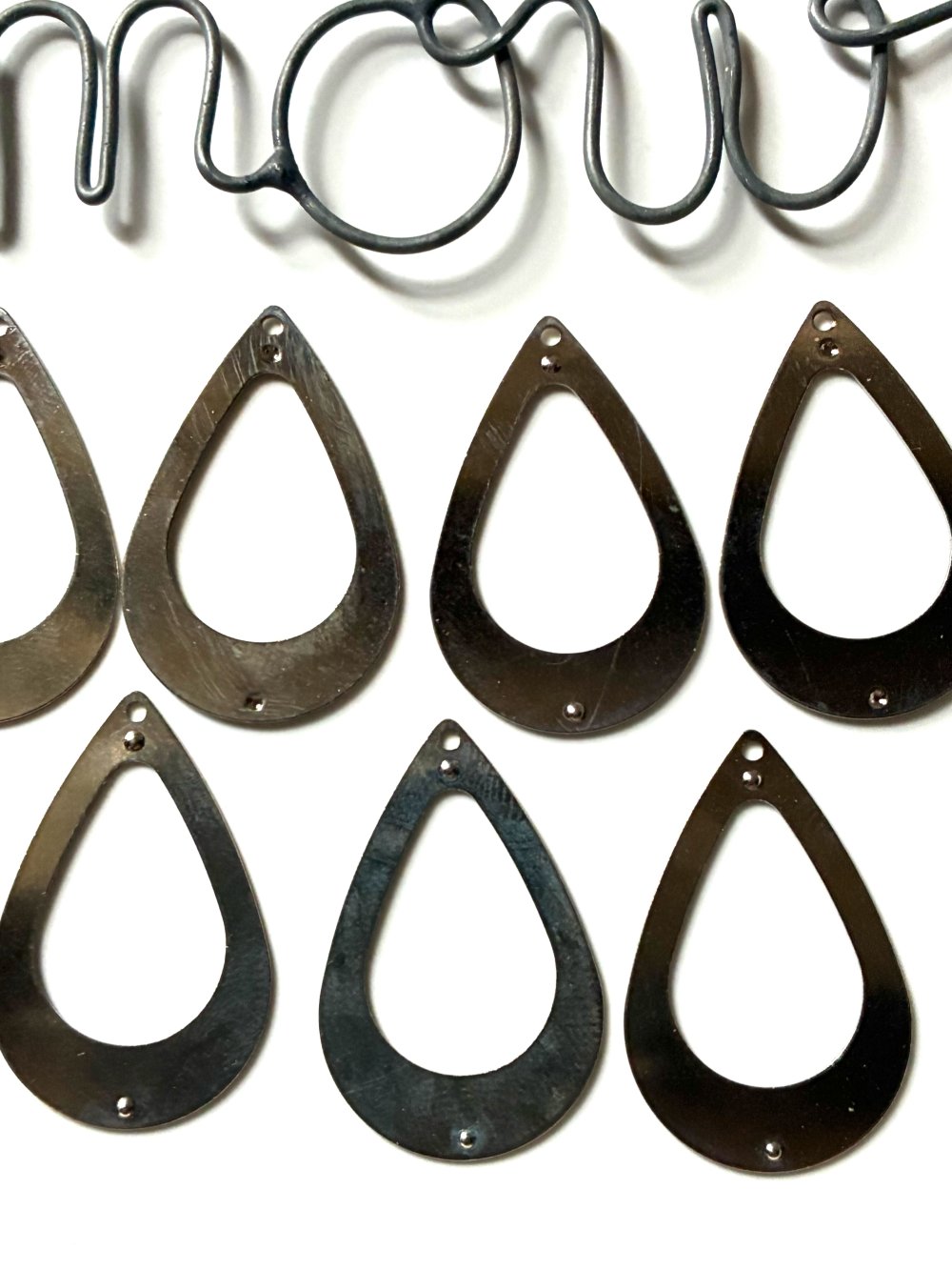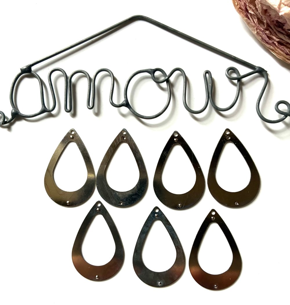 Ce Lot est composé de 7 pendentifs gouttes en métal argenté. Ces gouttes mesurent 3cmx2cm, plates et percées en haut (dimension du trou = 1mm)