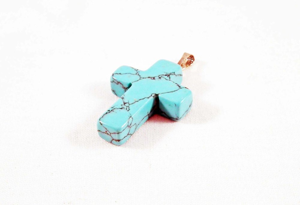 Magnifique Breloque Pendentif Croix en Verre Howlite Turquoise à Motifs avec Bélière