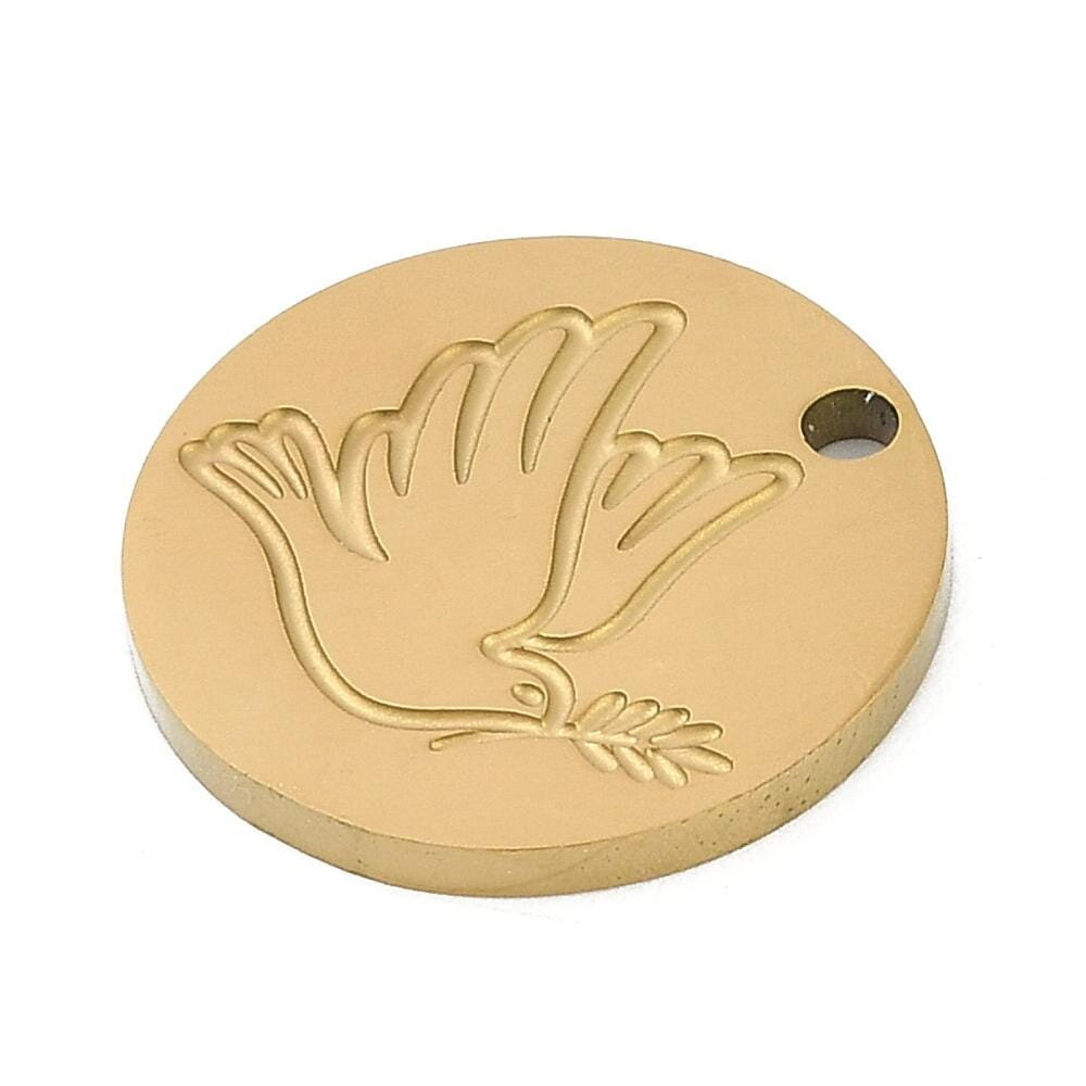 Médaille colombe doré en acier inoxydable 15 mm Breloque colombe doré
