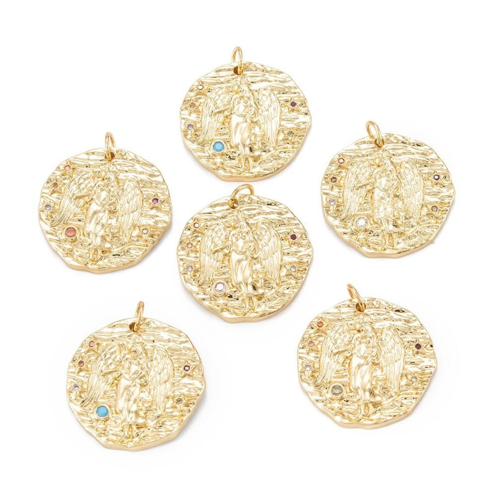 Médaille vierge pendentif constellation plaquée ou micro pavé de zirconiums 18 carats et cristal 21 mm Pendentif signe astrologique vierge