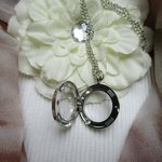 Médaillon flottant porte photo rond à hublot 3.6x2.9cm strass vert argenté Épaisseur de 7.2mm avec Chaine de 50cm approx Fermeture aimantée.M13