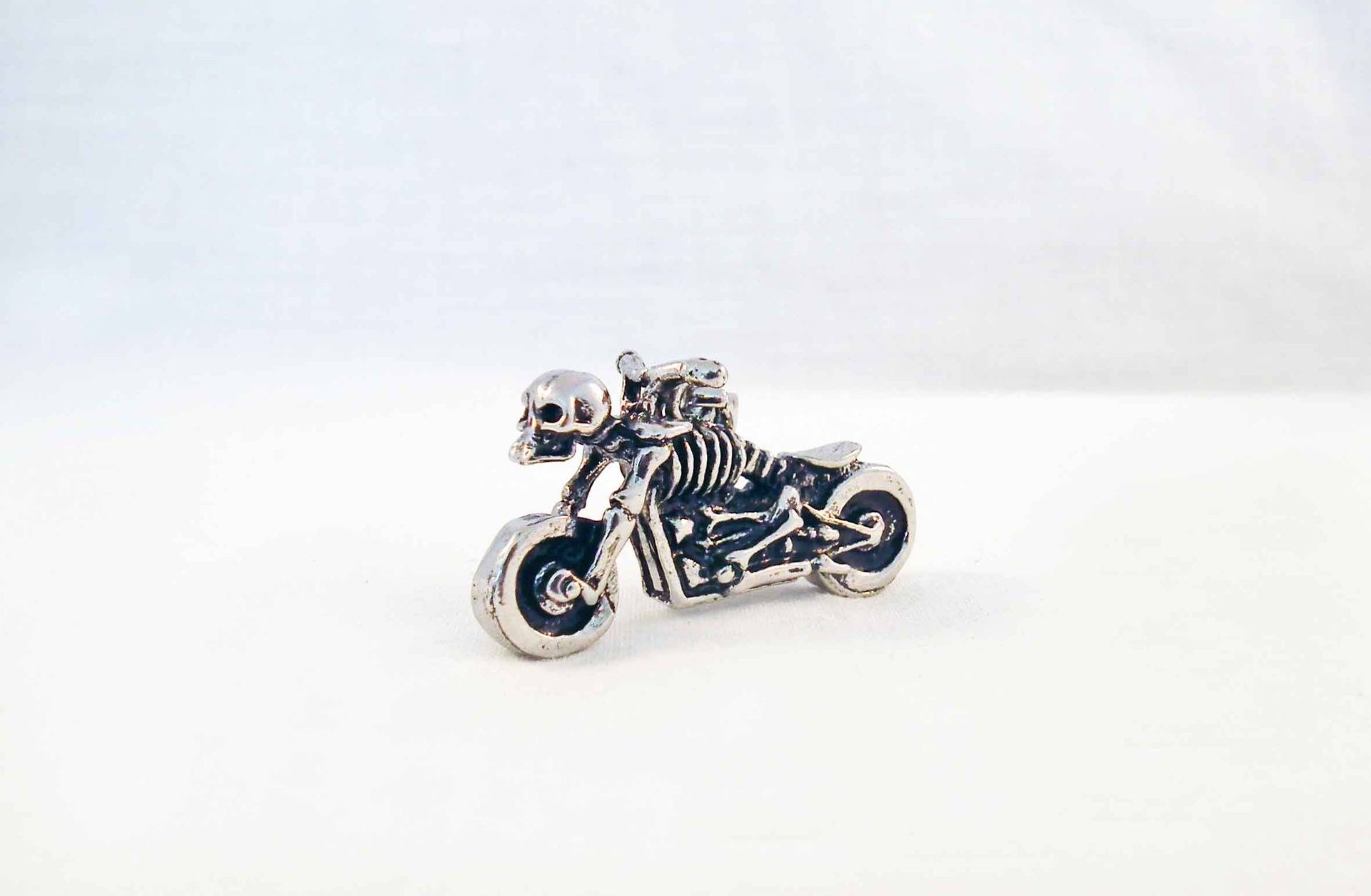 Original Pendentif Breloque Tête de Mort Squelette Moto Harley Argent Vieilli