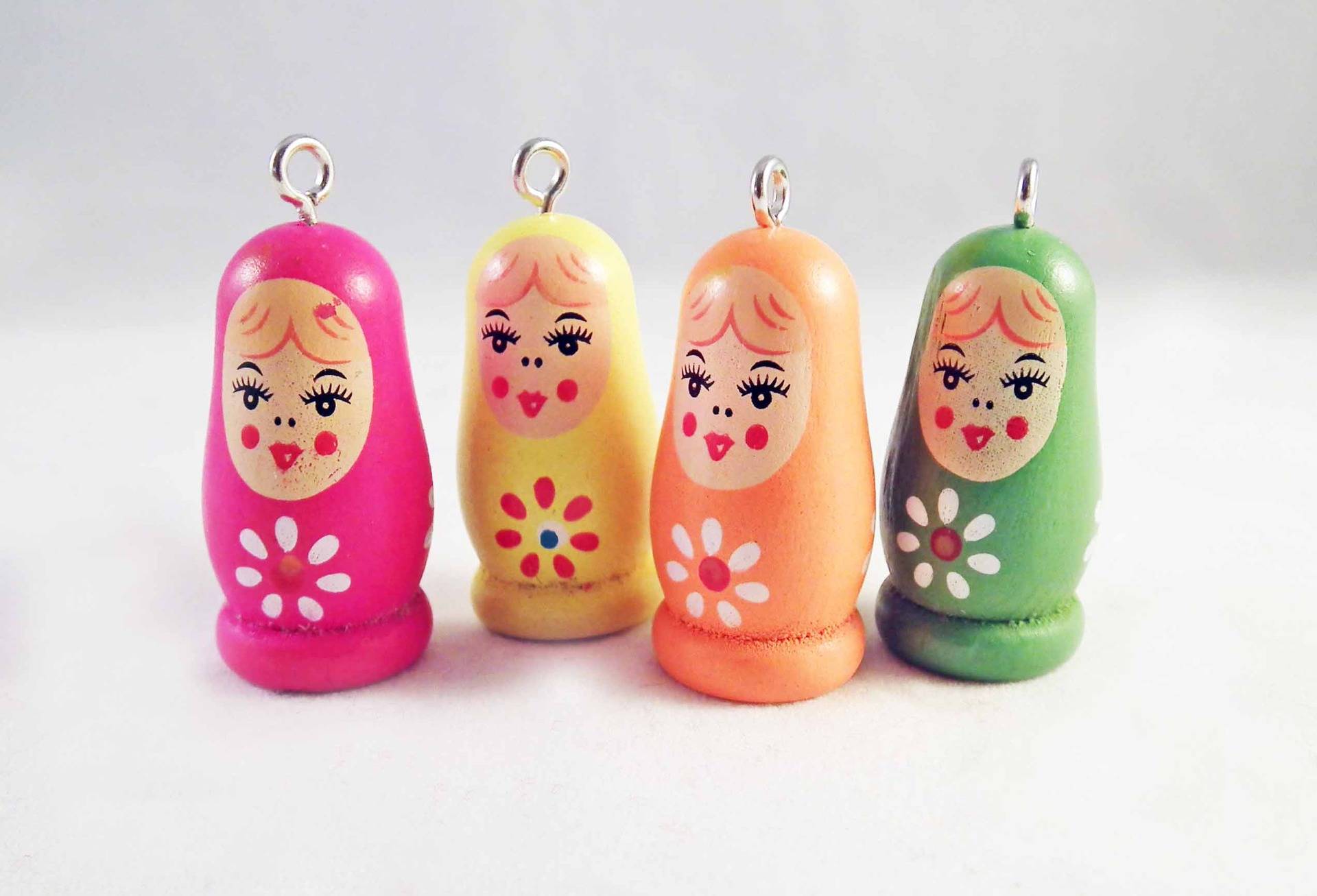 Superbe Lot de 4 Breloques Pendentifs Charms en Bois 3D Poupée Russe