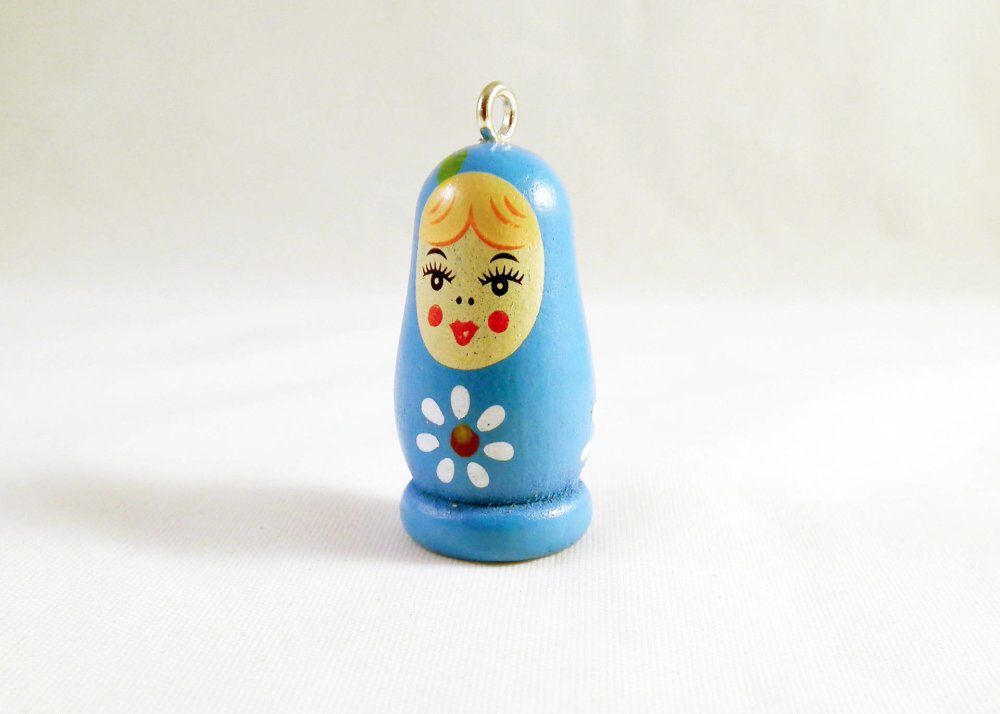 1 Breloque Pendentif Charm en Bois 3D Poupée Russe Pétale Bleu