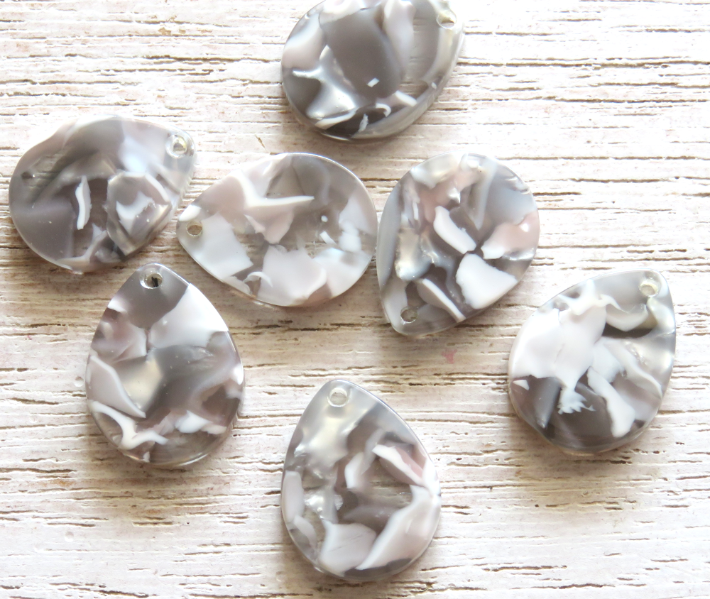 Pendentif goutte en acrylique, parfait pour créer des boucles d'oreilles, loisirs créatifs, divers bijoux..... coloris: marbré blanc gris