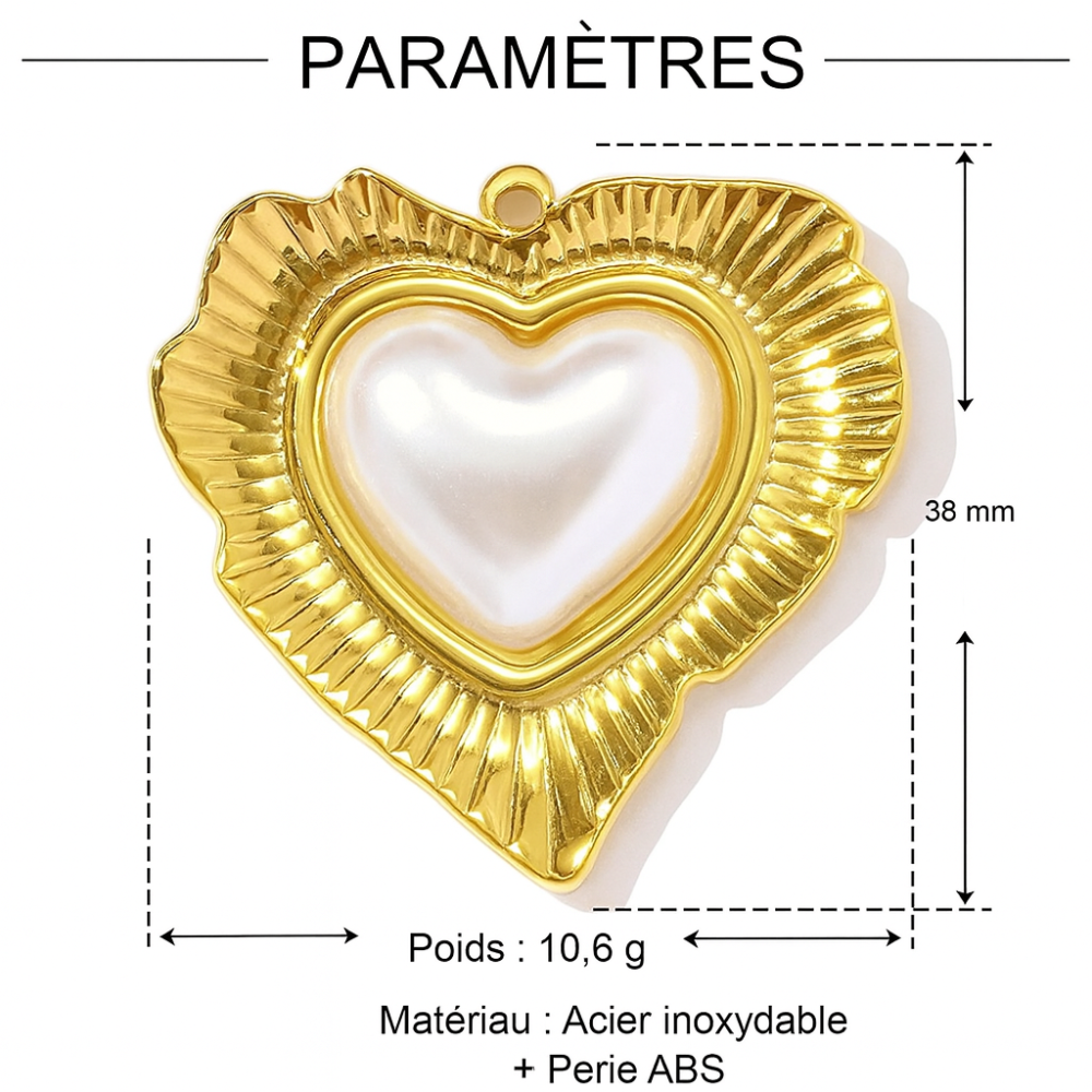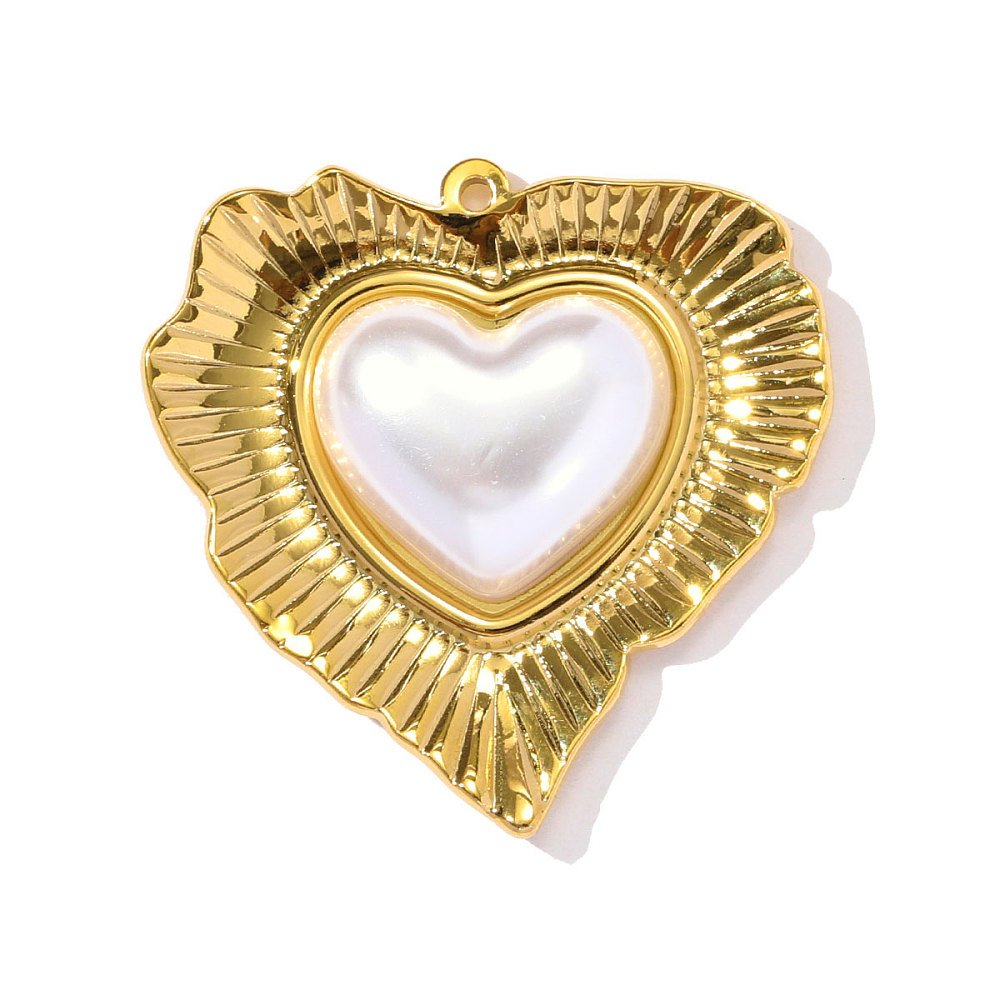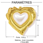 Pendentif cœur doré avec perle blanche – Acier inoxydable 38 mm