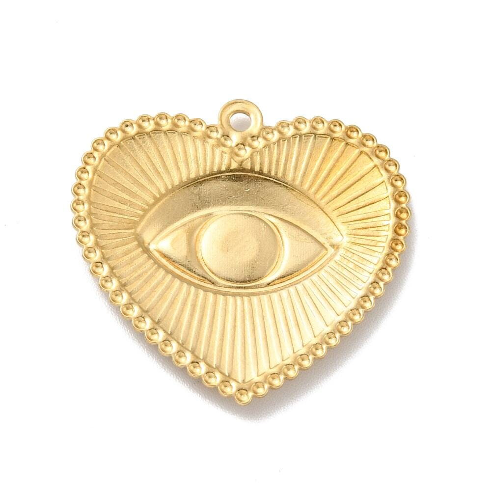 Pendentif cœur en laiton brut 28 mm cœur avec œil protecteur