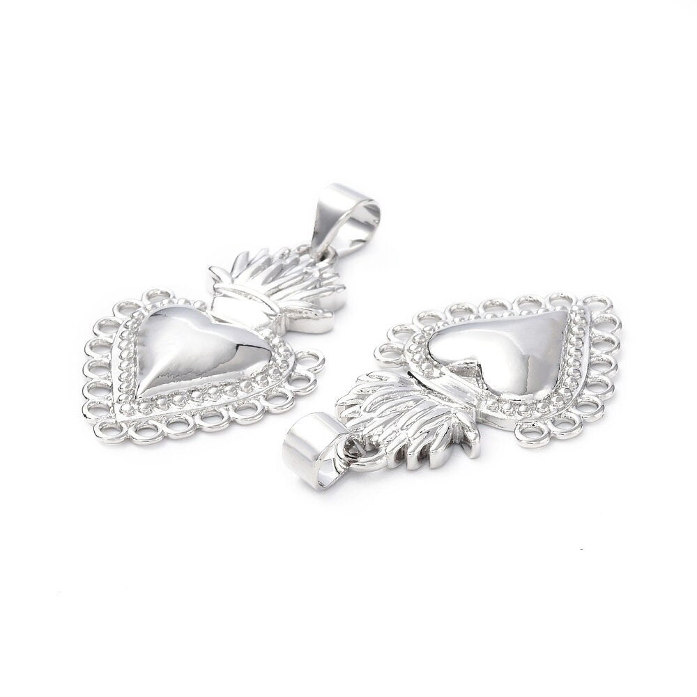 Pendentif cœur ex-voto 27 x 17,5 mm pendentif cœur argenté