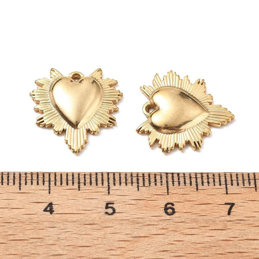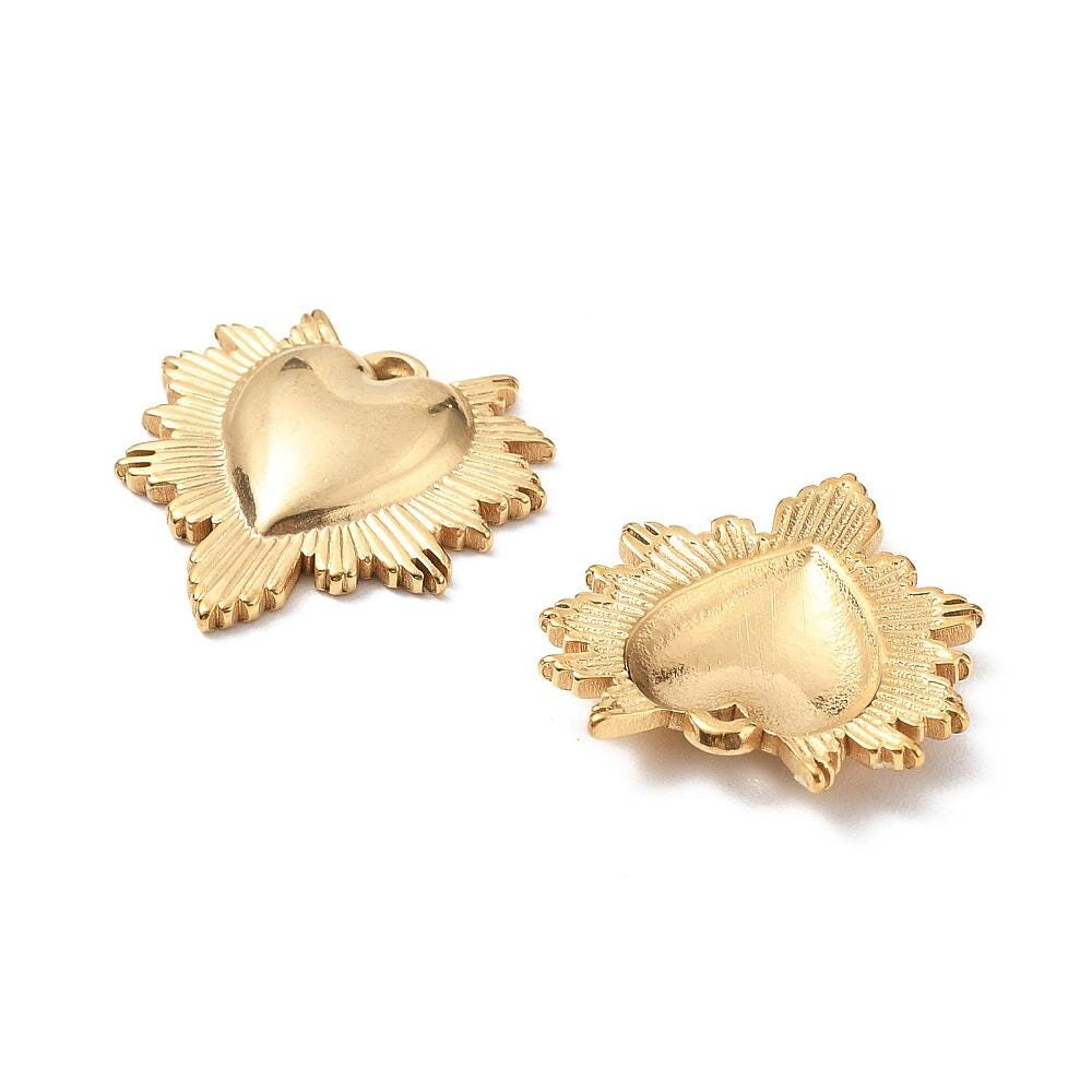 Pendentif cœur ex voto doré en acier 304 inoxydable 17 mm cœur doré