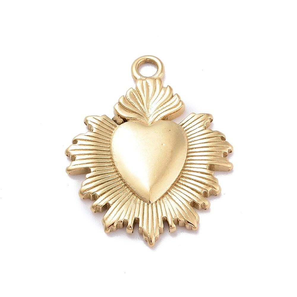 Pendentif cœur ex voto doré en acier 304 inoxydable 23 mm cœur doré