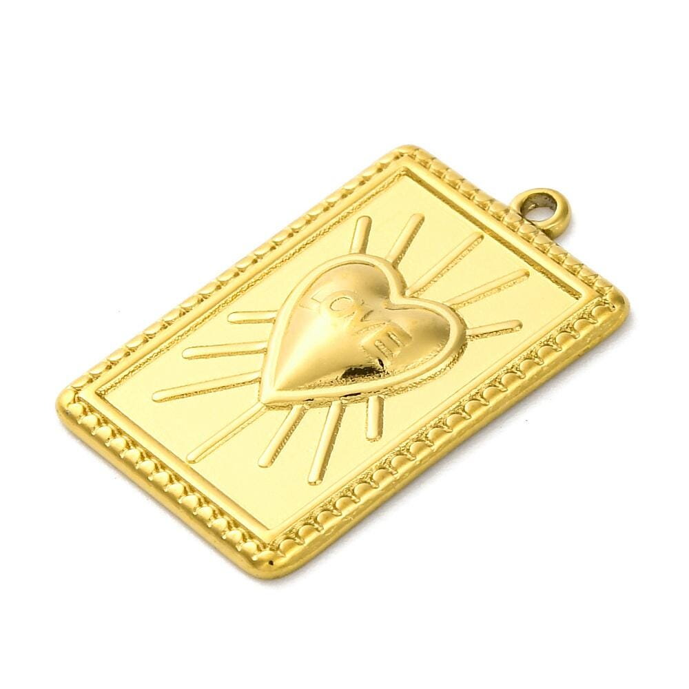 Pendentif cœur ex voto doré en acier 304 inoxydable cœur doré