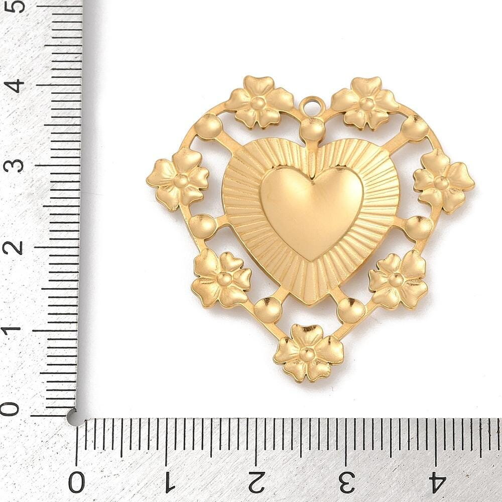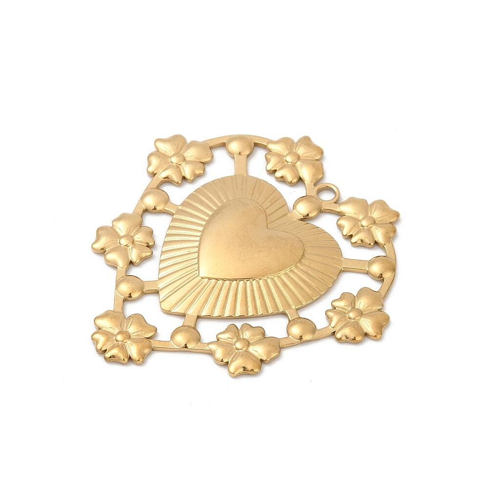 Pendentif cœur ex voto doré en acier 304 inoxydable cœur doré