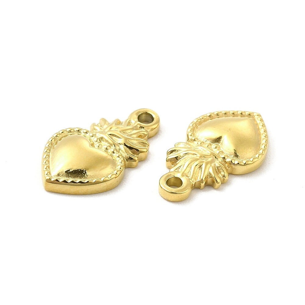 Pendentif cœur sacré ex voto en acier inoxydable doré
