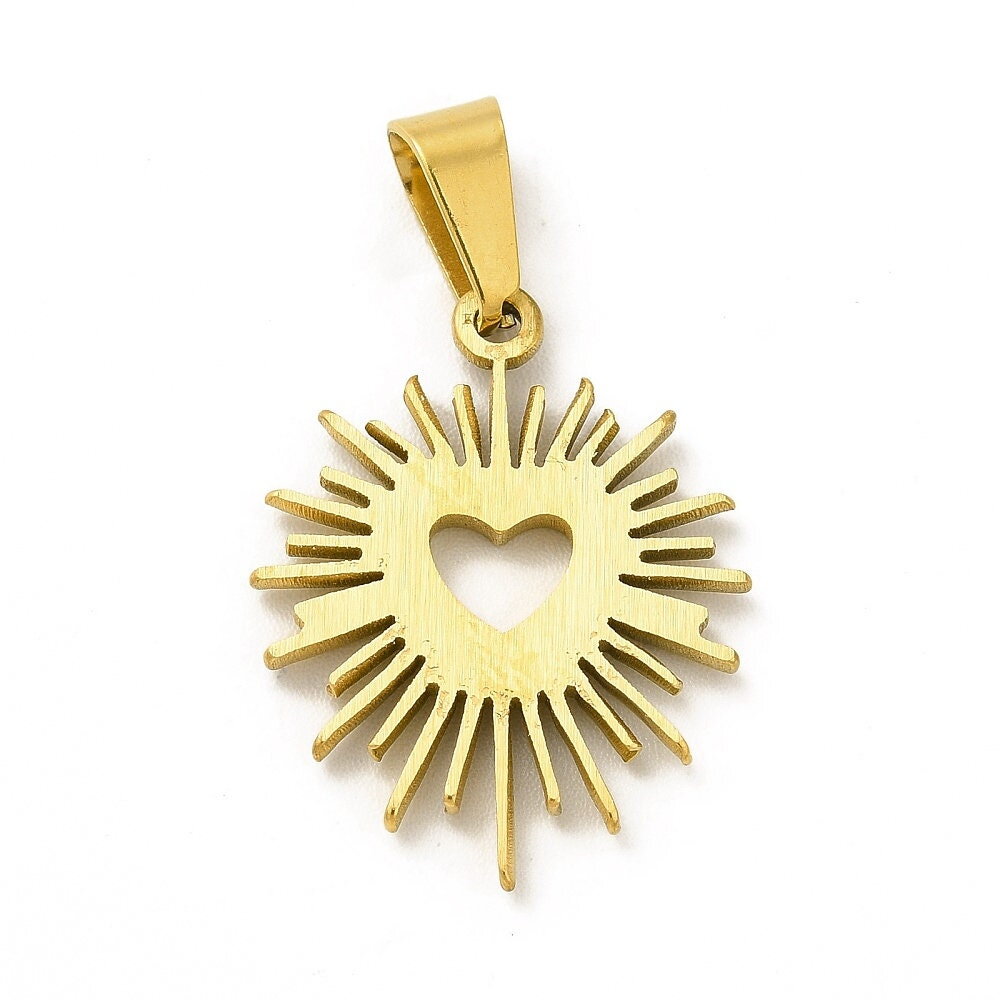 Pendentif cœur ex voto en acier inoxydable 304 inoxydable doré pendentif soleil avec cœur évidé 23 x 18 mm