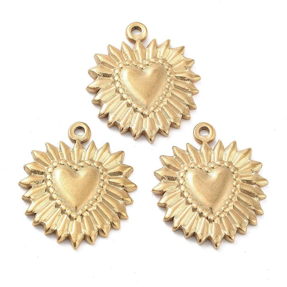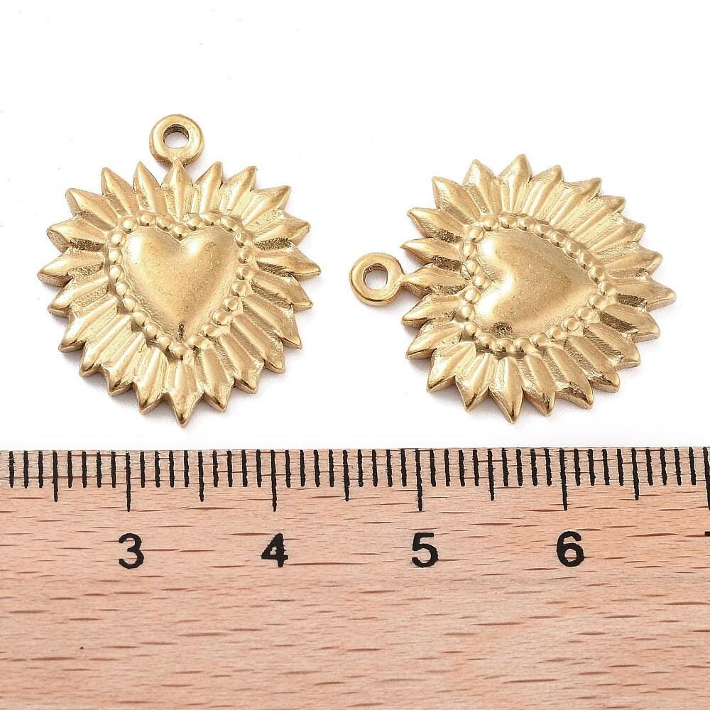Pendentif cœur ex voto en acier inoxydable doré cœur doré 23 mm