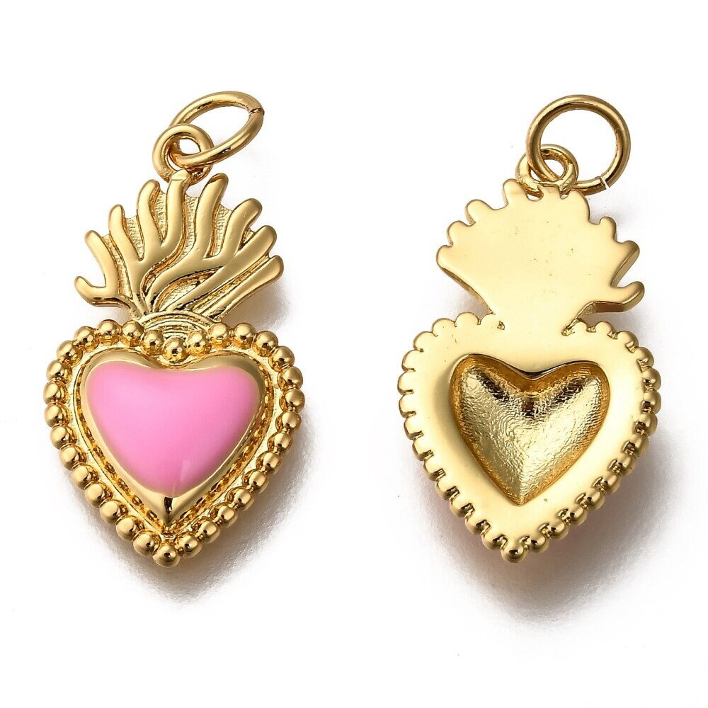 Pendentif cœur ex voto en métal doré cœur émaillé fabrication de bijoux