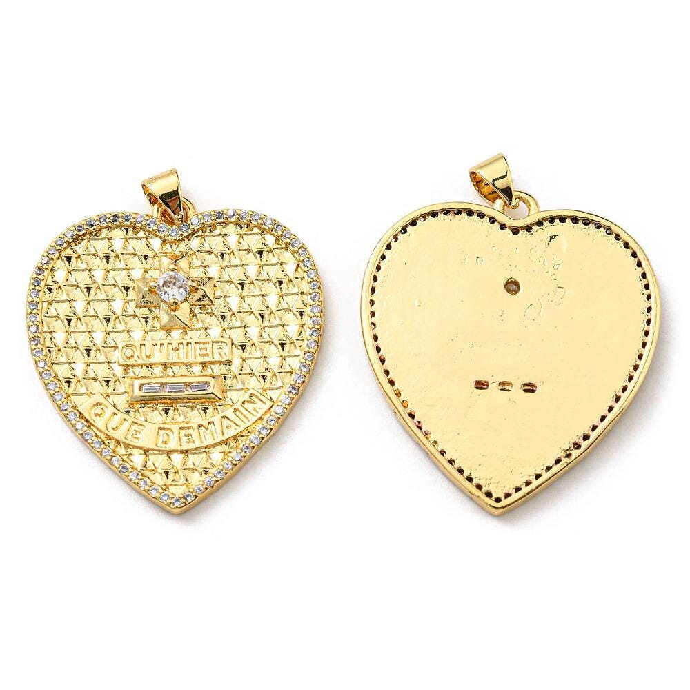 Pendentif cœur plaqué or 30 mm breloque cœur doré médaille porte bonheur