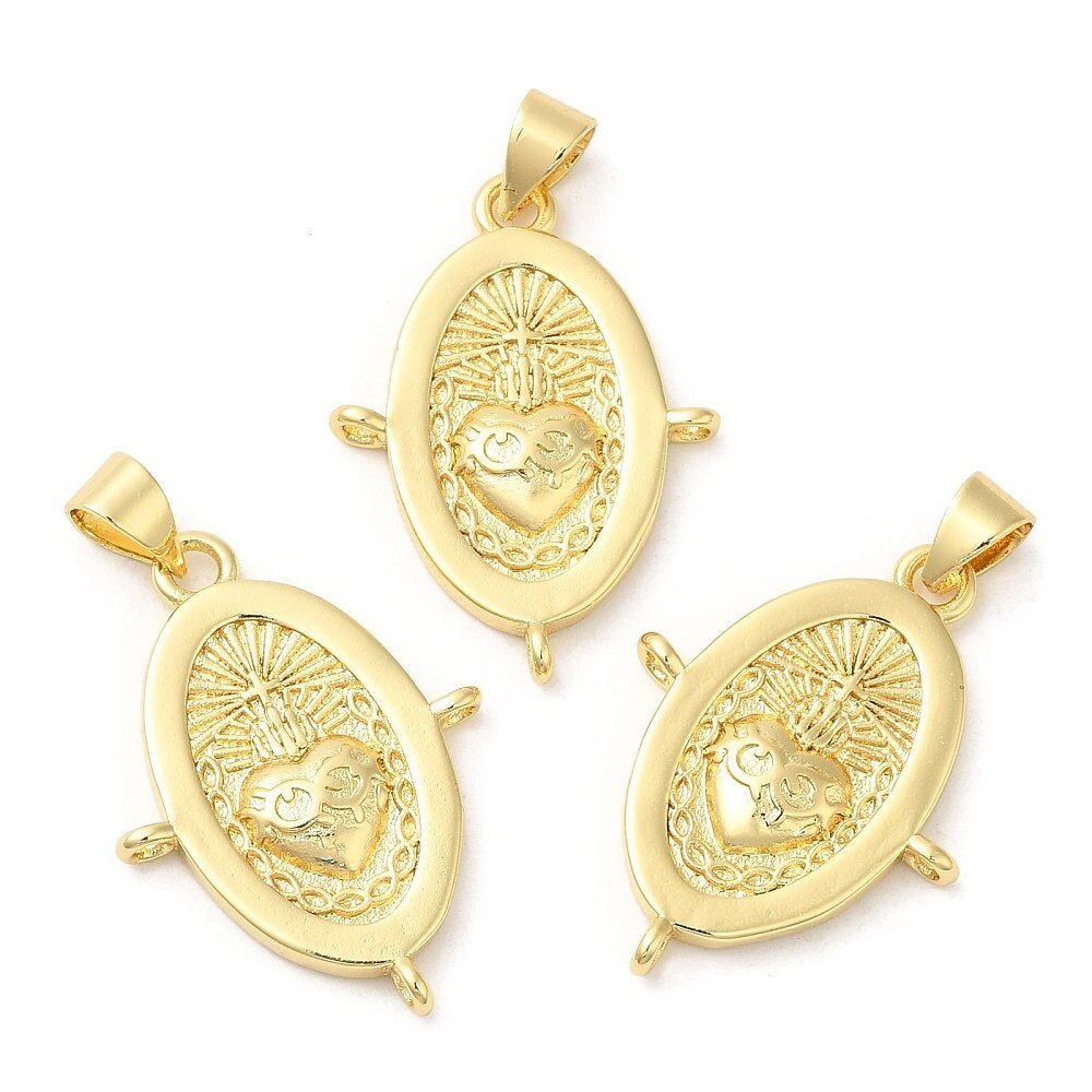 Pendentif cœur sacré 25,5 mm pendentif cœur ex voto plaqué or 18 carats