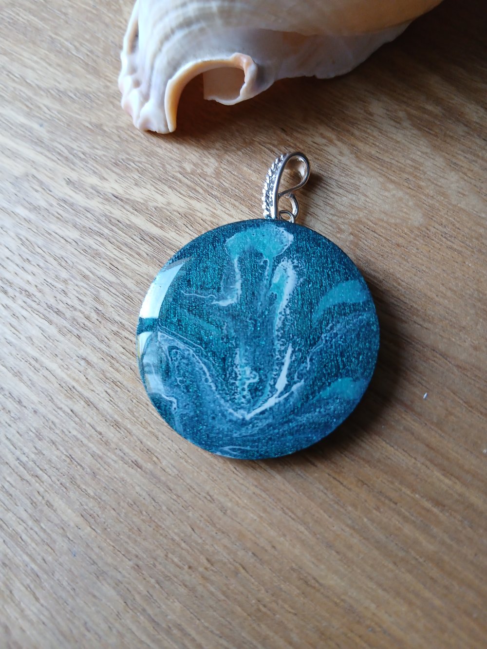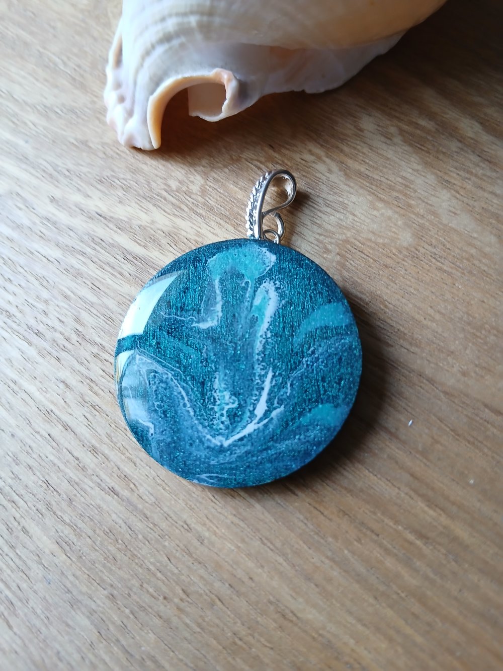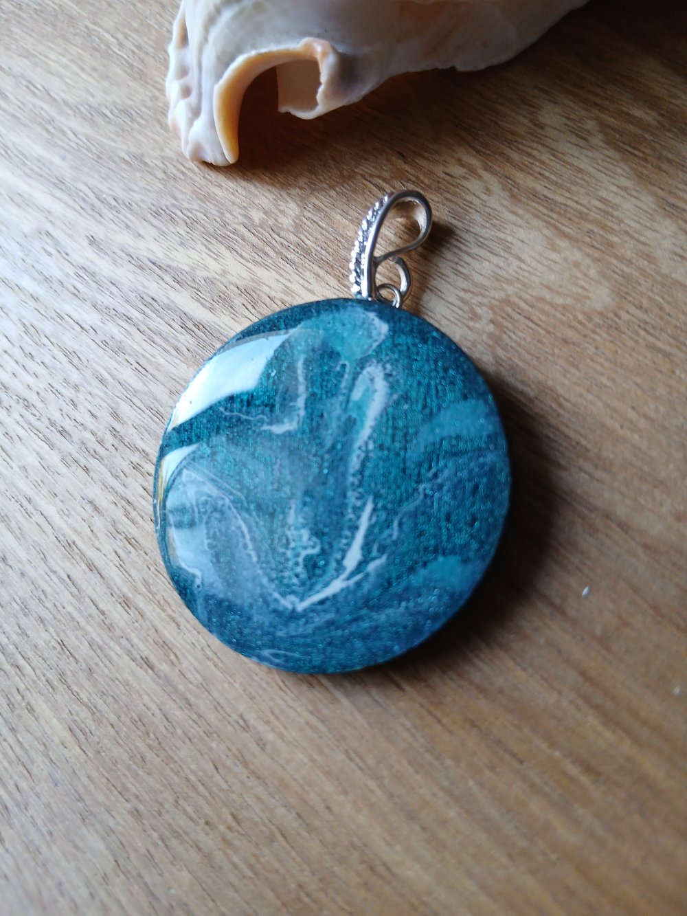 Pendentif pour créations bijoux fait main, support en bois de 38 mm ,poncé,peint et resiner en couches épaisses pour un effet optimal au fini brillant