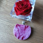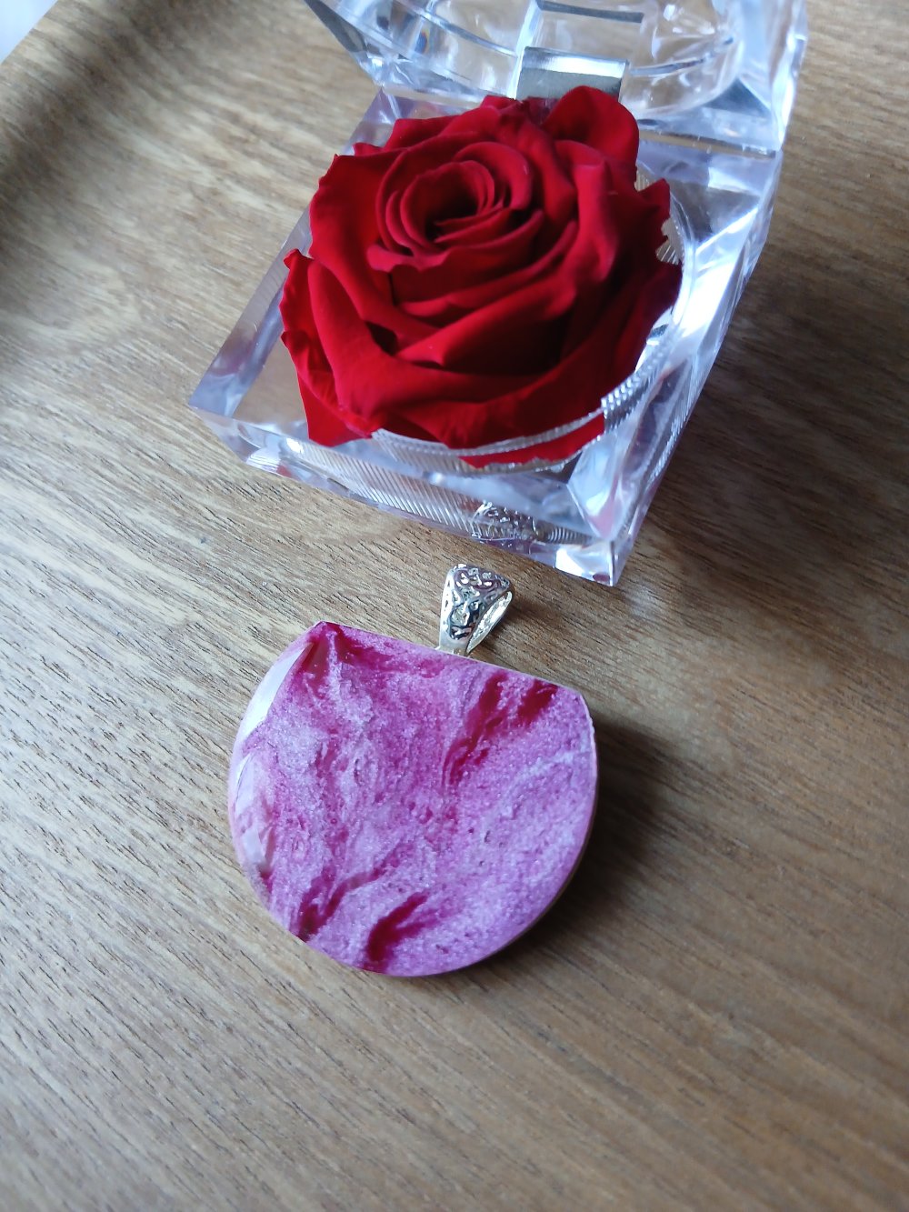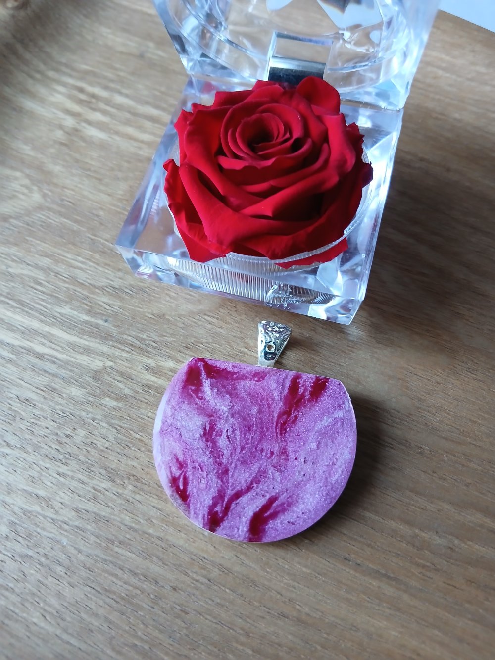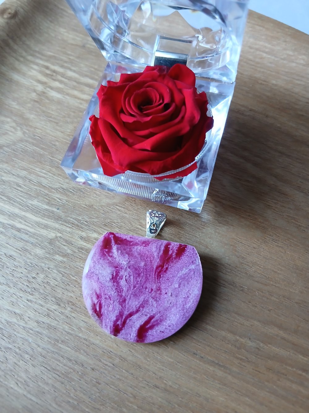 Pendentif camaïeu rose intense en bois peint et resiner,support de 40x35 mm fait main