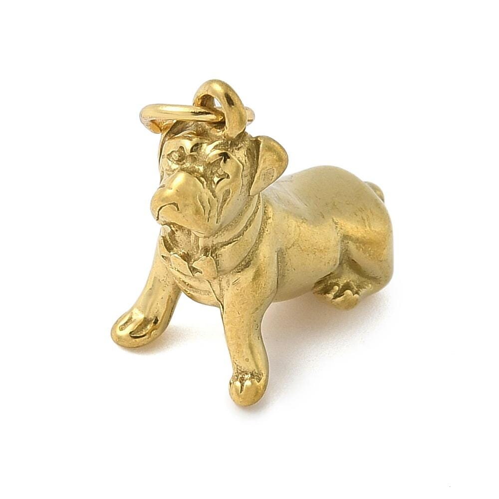 Pendentif Chien en Acier Inoxydable Doré – Breloque chien doré