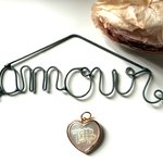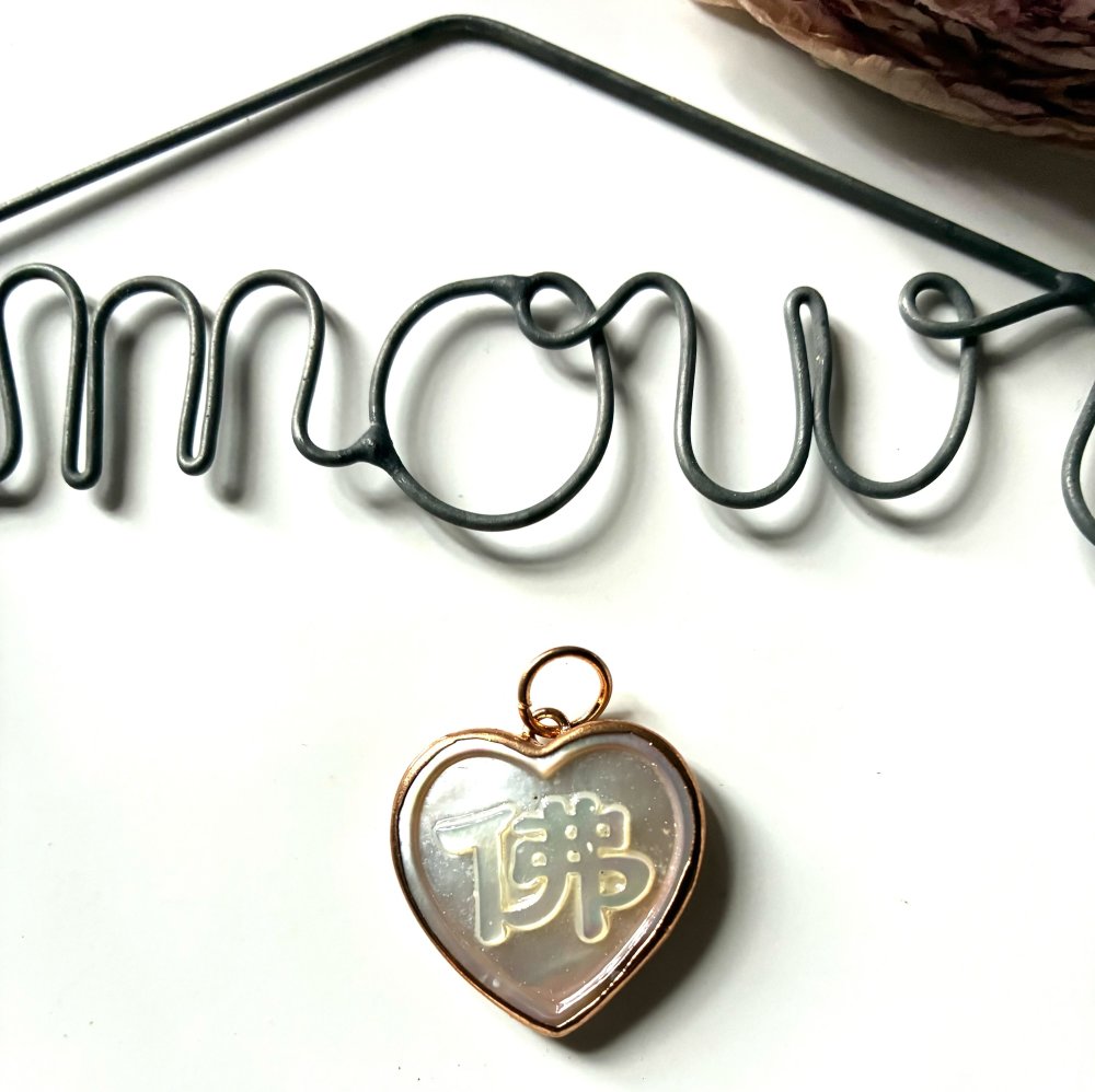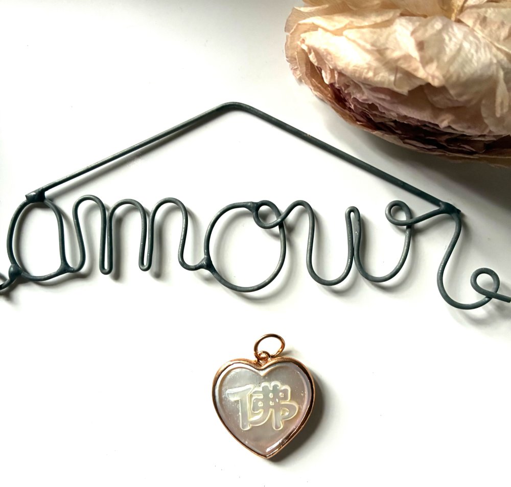 Pendentif coeur en métal doré et nacre idéogramme chinois