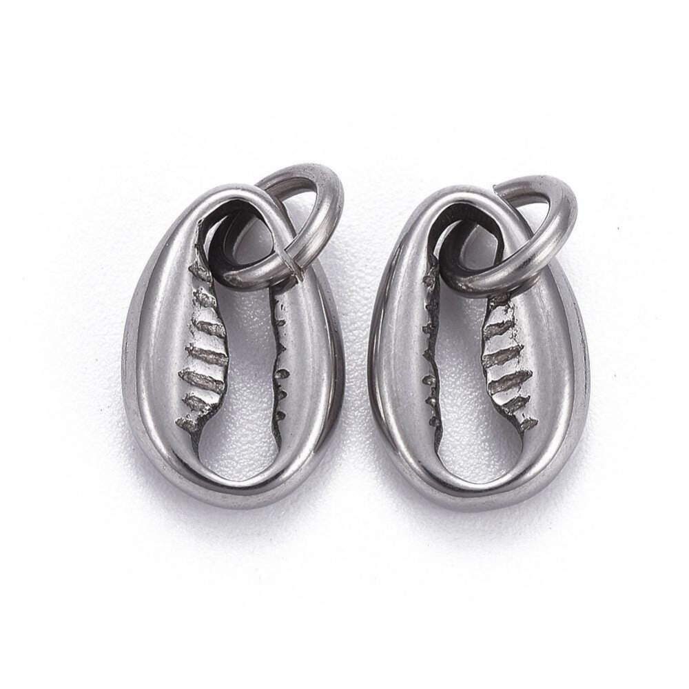 Pendentif coquillage argenté 11,5 mm acier inoxydable - breloque cauri - breloque coquillage - Unité