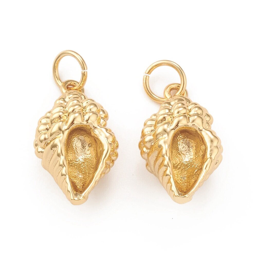 Pendentif coquillage doré 18 mm breloque coquille plaquée or 18k - Unité