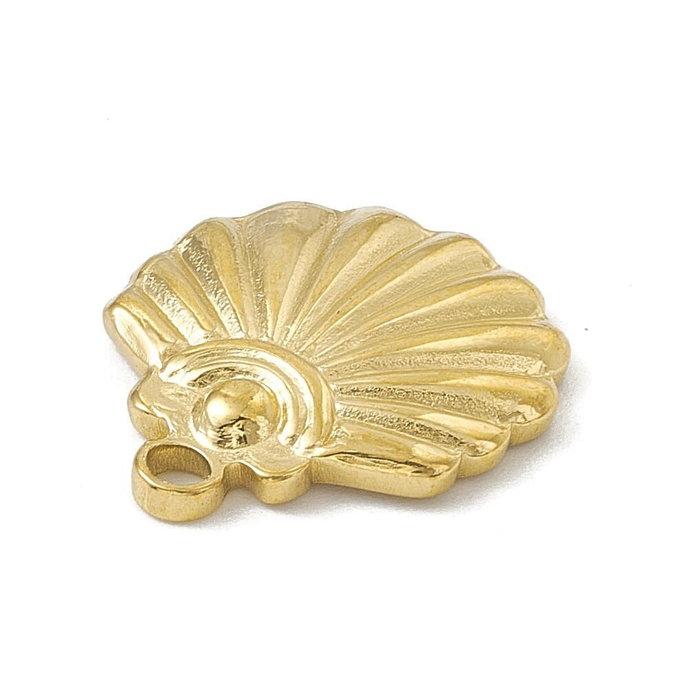 Pendentif coquillage doré 18mm breloque coquille acier inoxydable 304 - Unité