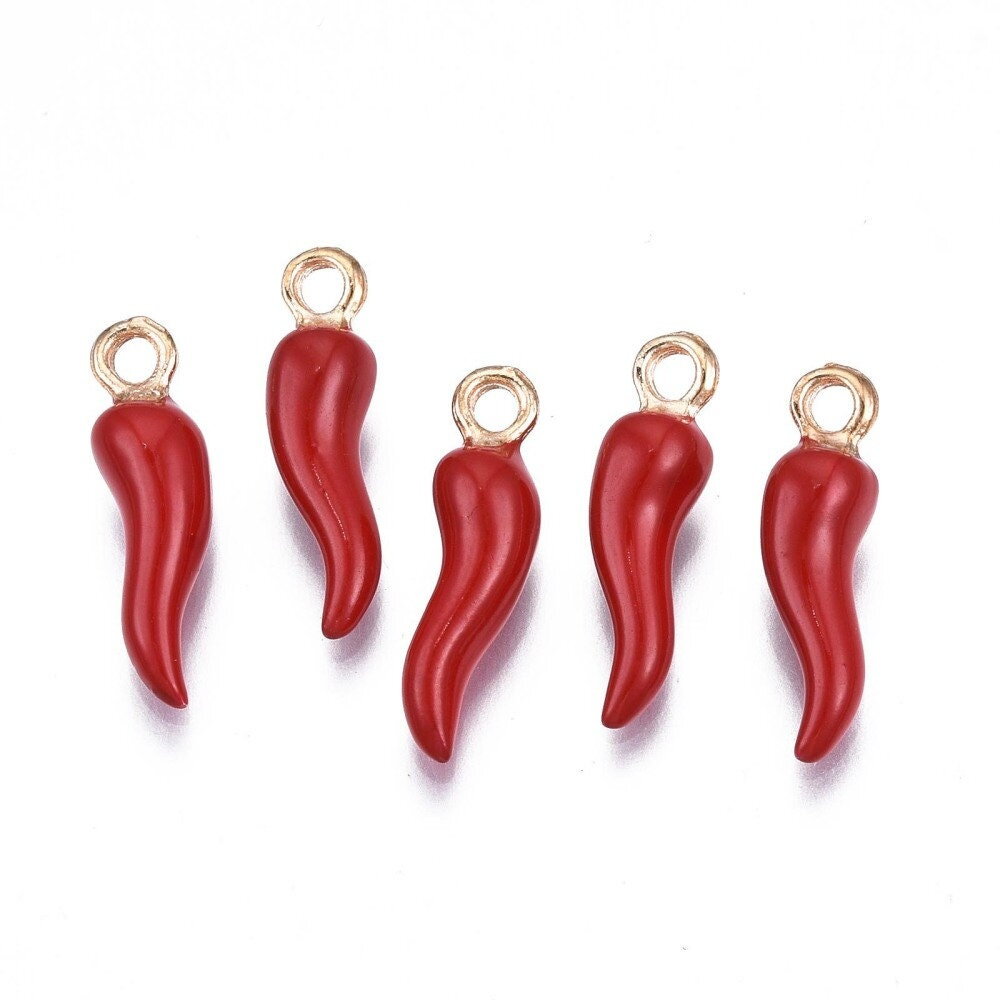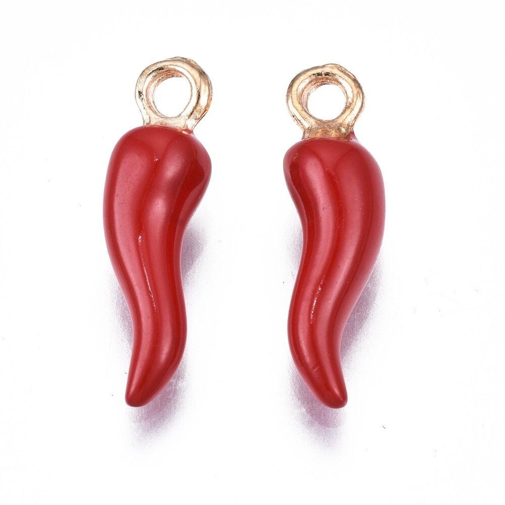 Pendentif corne rouge et doré émaillé breloque piment rouge 21 x 6 mm