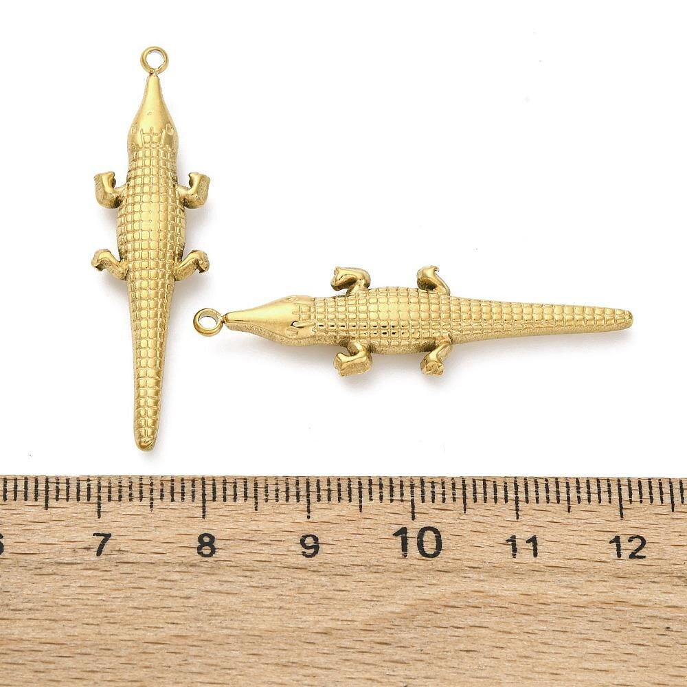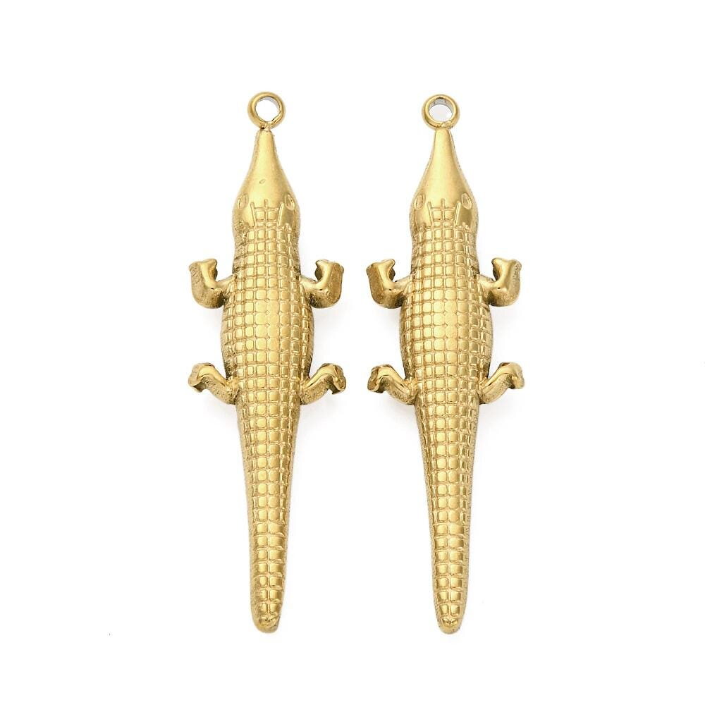Pendentif crocodile doré en acier inoxydable – Bijou animal totem, accessoire DIY, création de bijoux