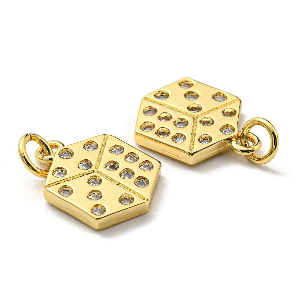 Pendentif dé 3 faces plaquées ou 18 carats et zircons pendentif doré jeu porte bonheur - l'unité