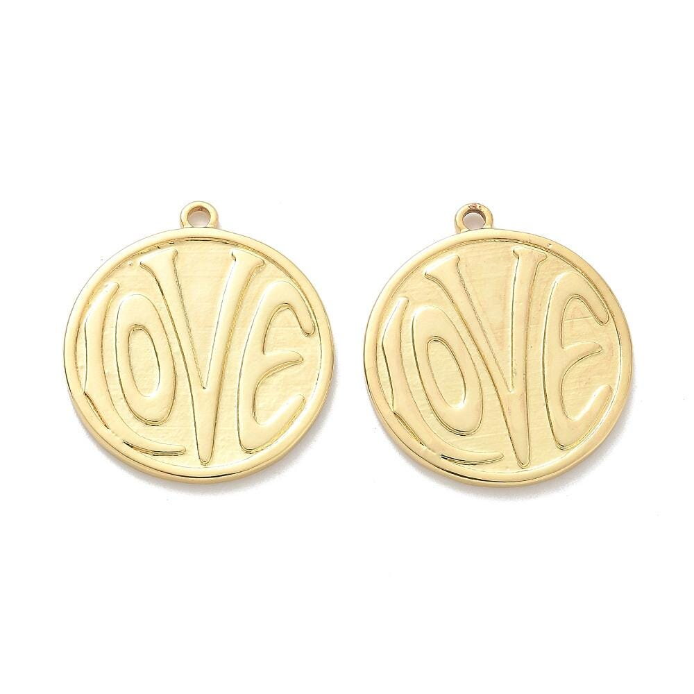 Pendentif Doré LOVE Médaille Ronde Gravée