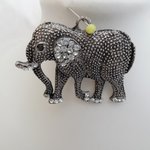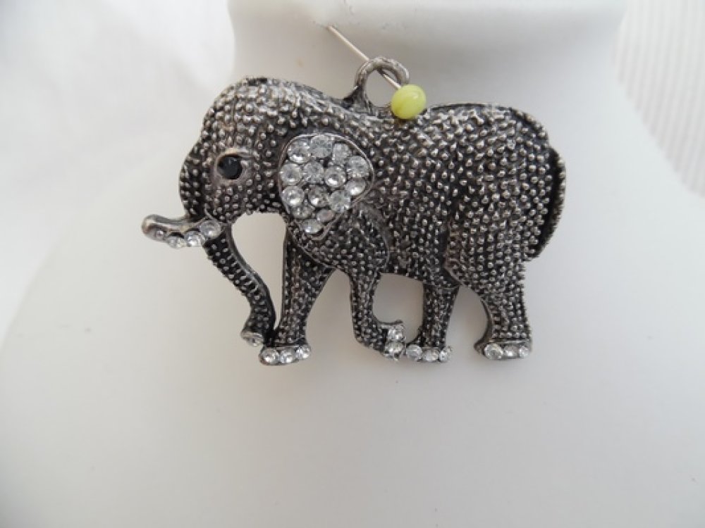 Pendentif éléphant 5.3x4cm oeil noir avec strass blanc argent tibétain