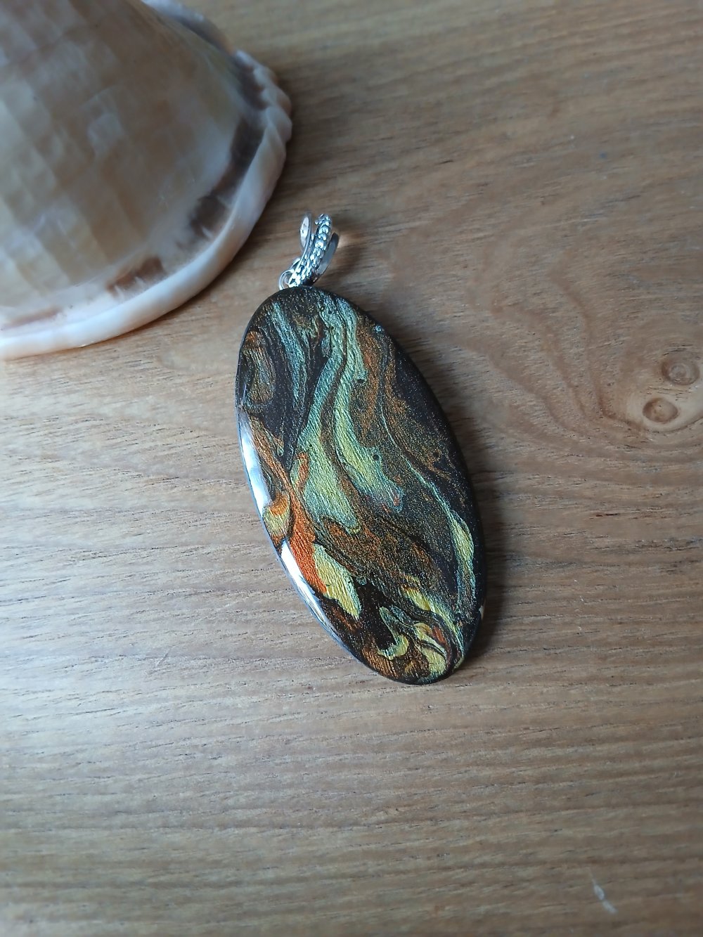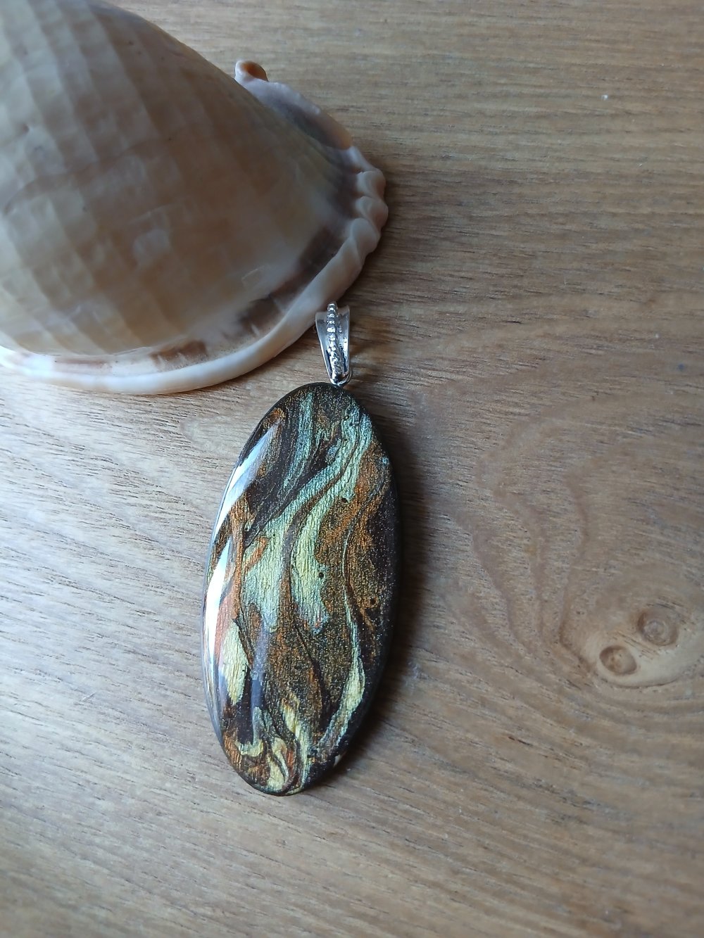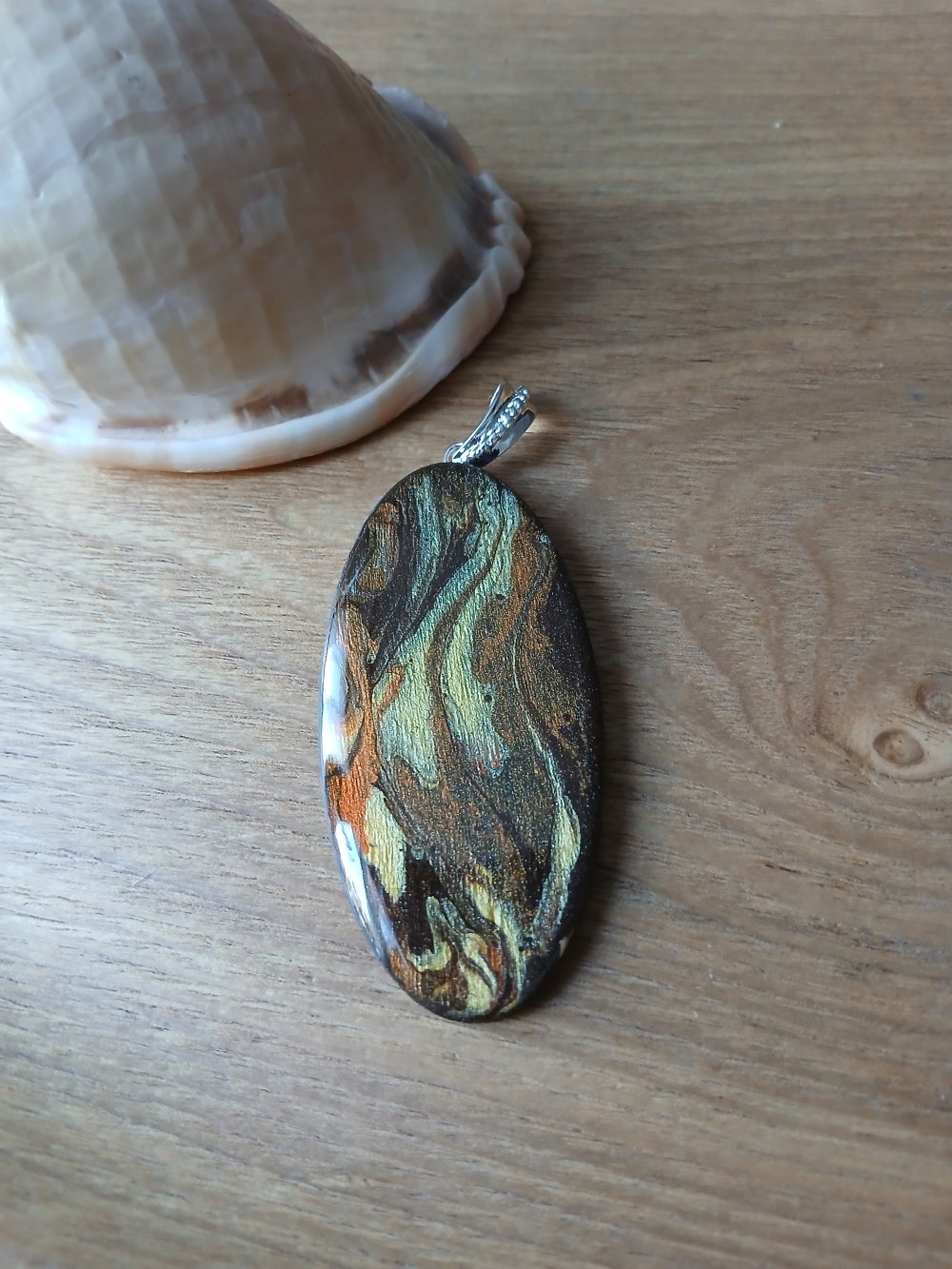 Pendentif en bois resiner fait main,support de 60x30 mm