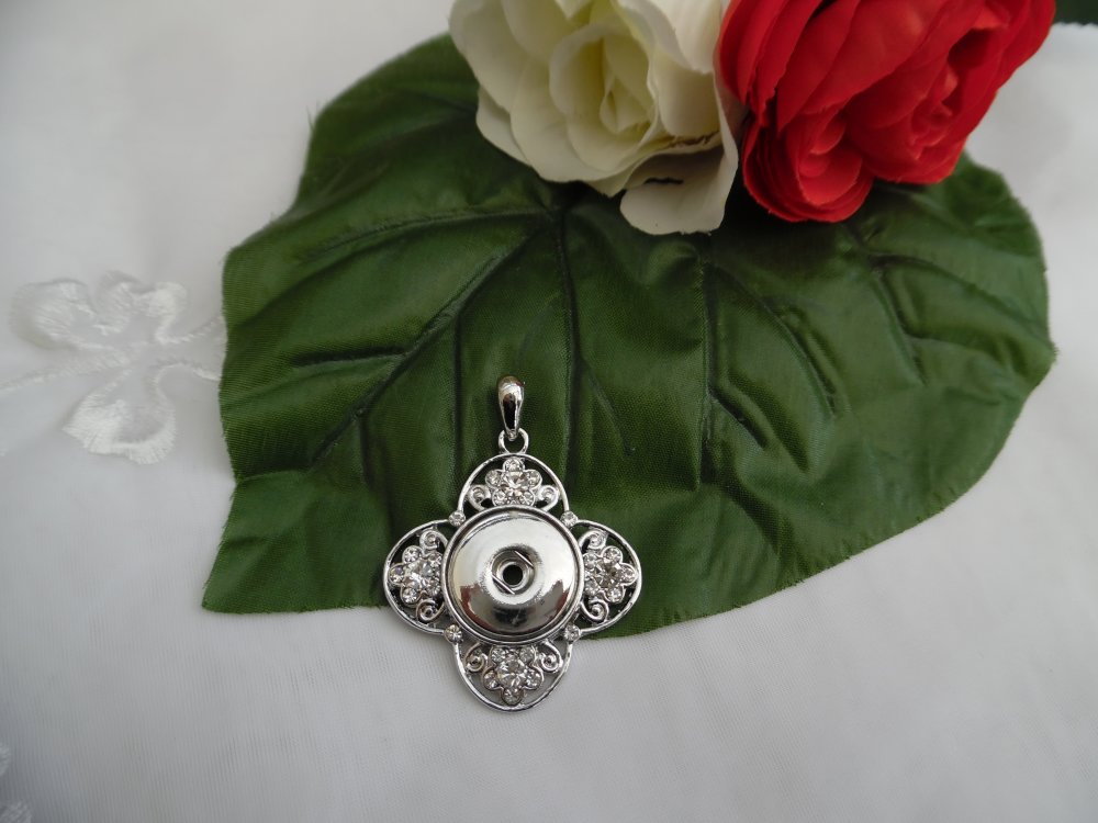 1 Pendentif fleur 4.9x3.8cm strass diamond métal pour bouton pression de 5.3mm standard (P37) vendu sans bouton