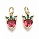 Pendentif fraise laiton doré zircones rouges et vertes 13 mm pendentif fruit
