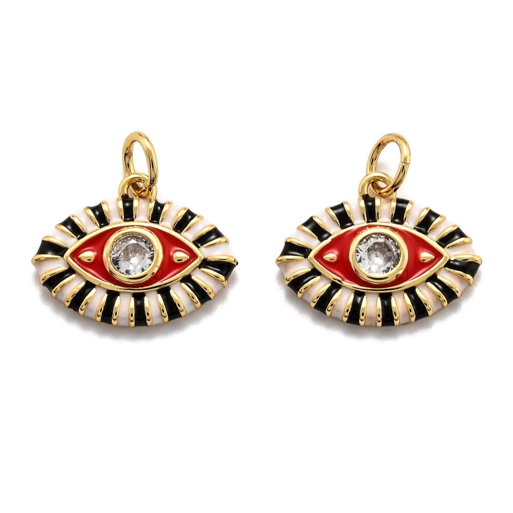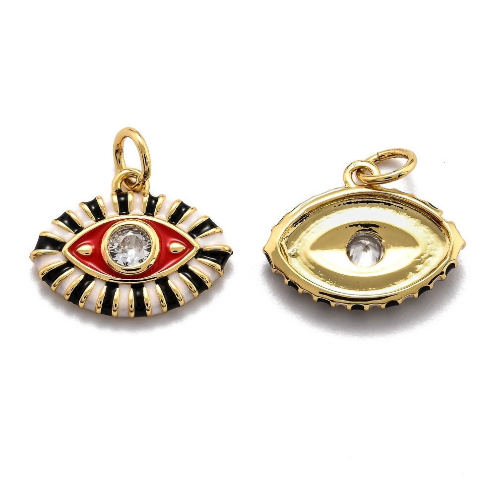 Pendentif œil porte bonheur en laiton plaqué or 18k et email