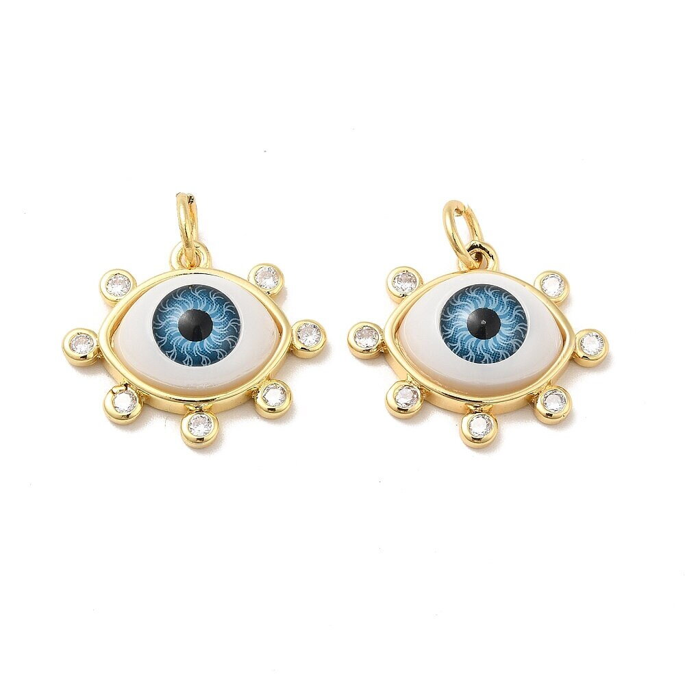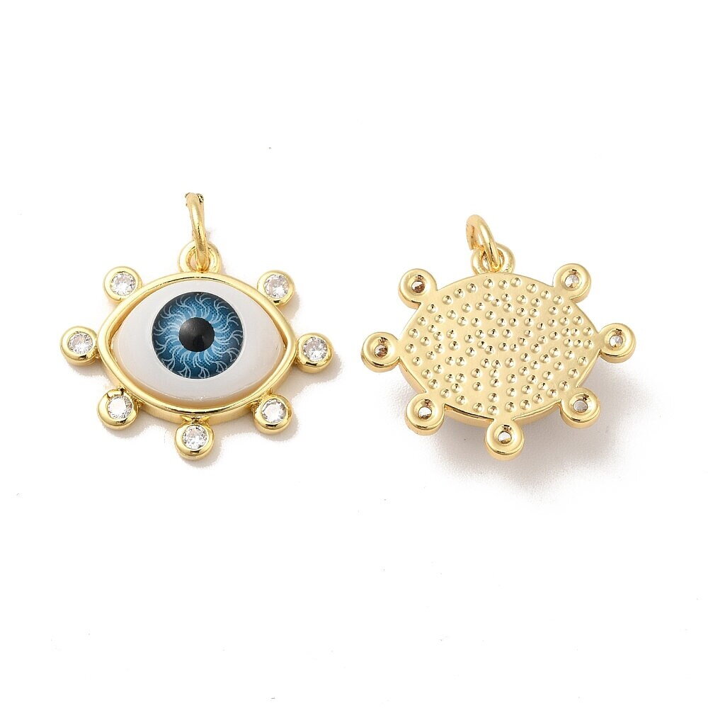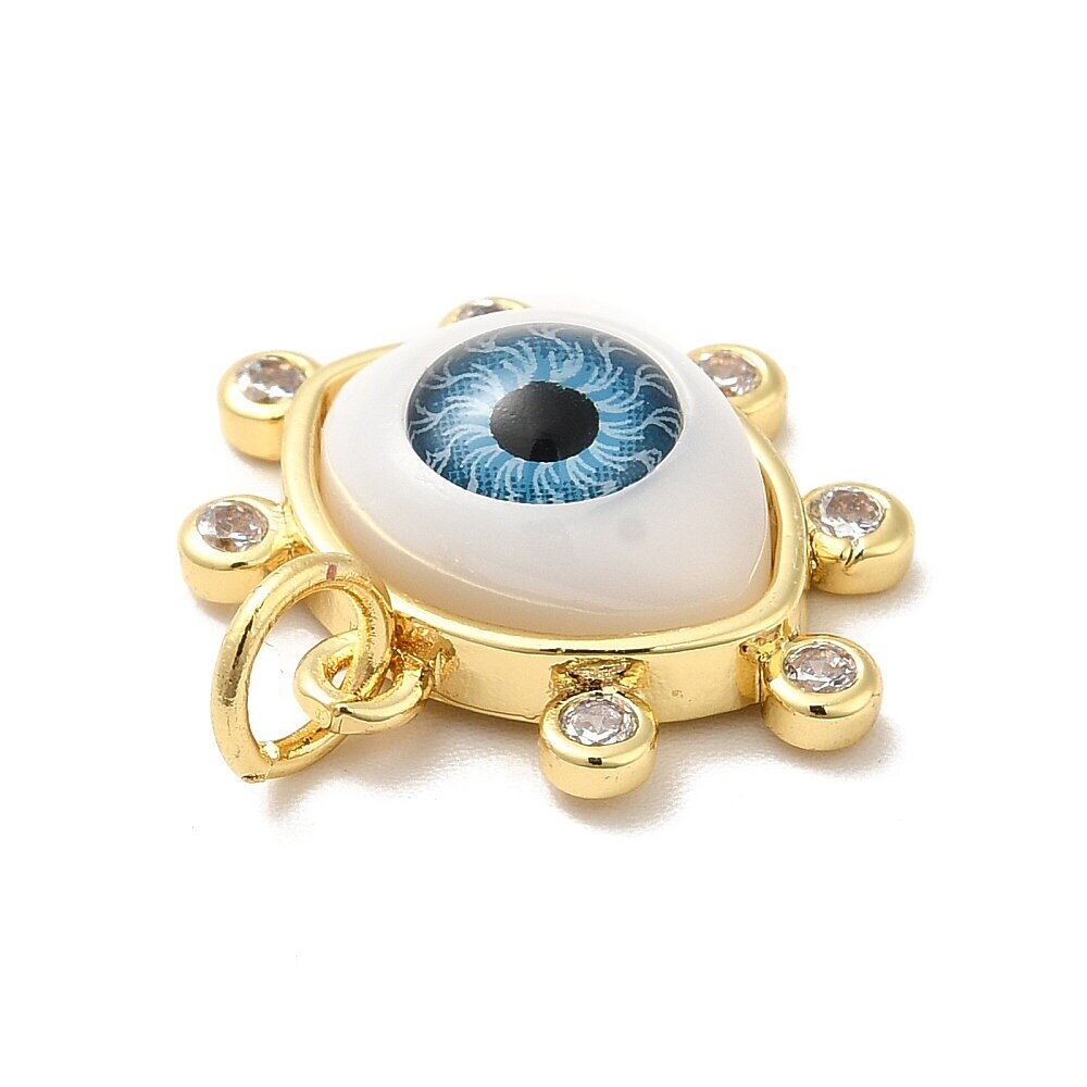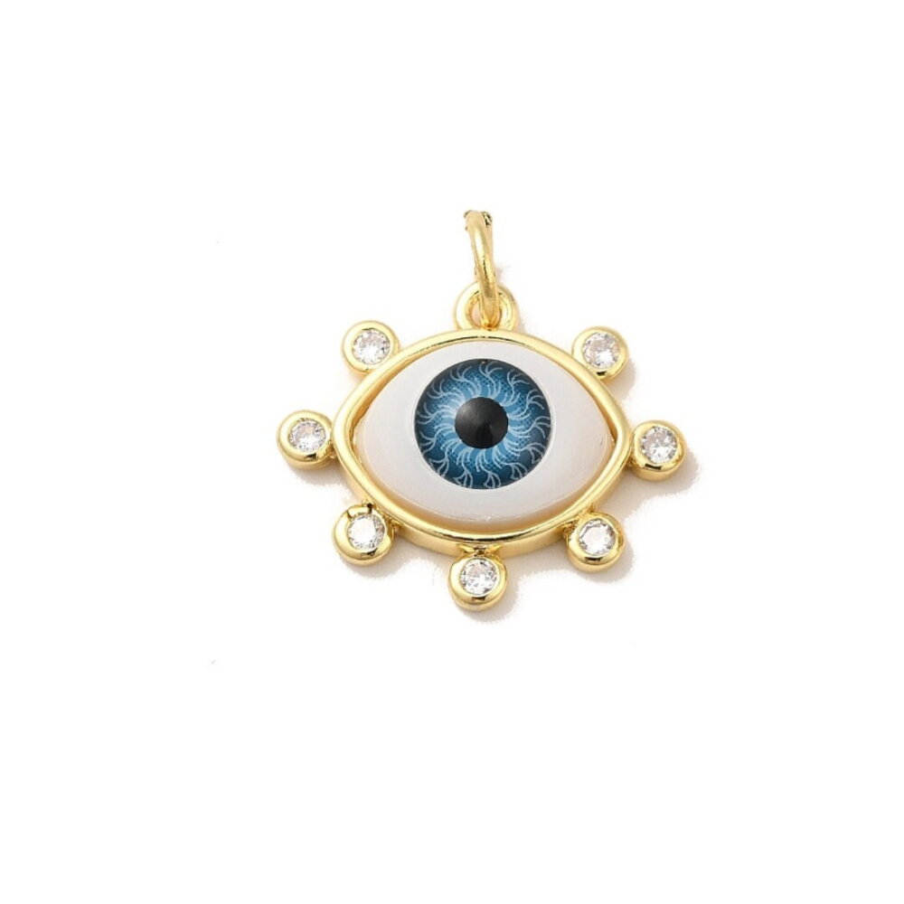 Pendentif porte bonheur œil protecteur en résine plaquée or 18 carats