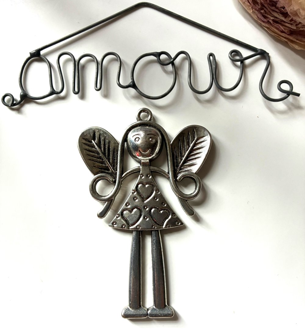 Ce pendentif Breloque en forme de fillette mesure 8 cm de hauteur avec piquot en métal argenté, avec piquot