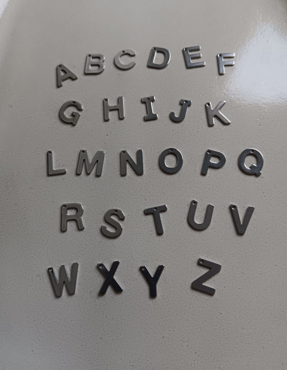Un pendentif lettre C en acier inoxydable argenté. Dimensions : 11x10mm.