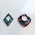 Pendentif losange, multicolore, en acétate. Dimensions : 36x36mm - A l'unité ou en lot de 10 pièces