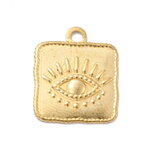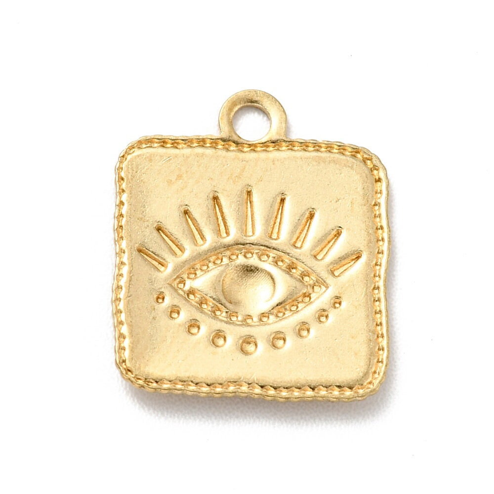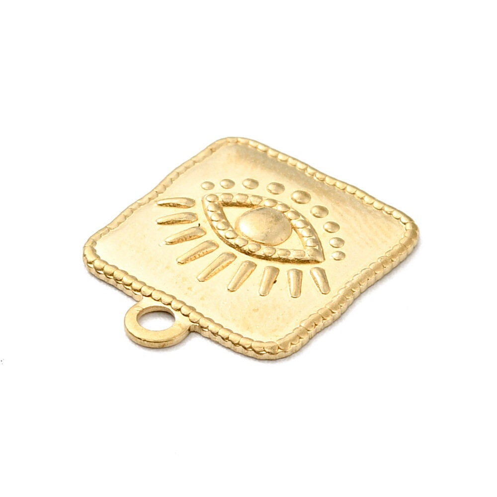 Pendentif médaille carrée rectangle œil protecteur 22 mm en laiton doré pendentif porte bonheur breloque chance